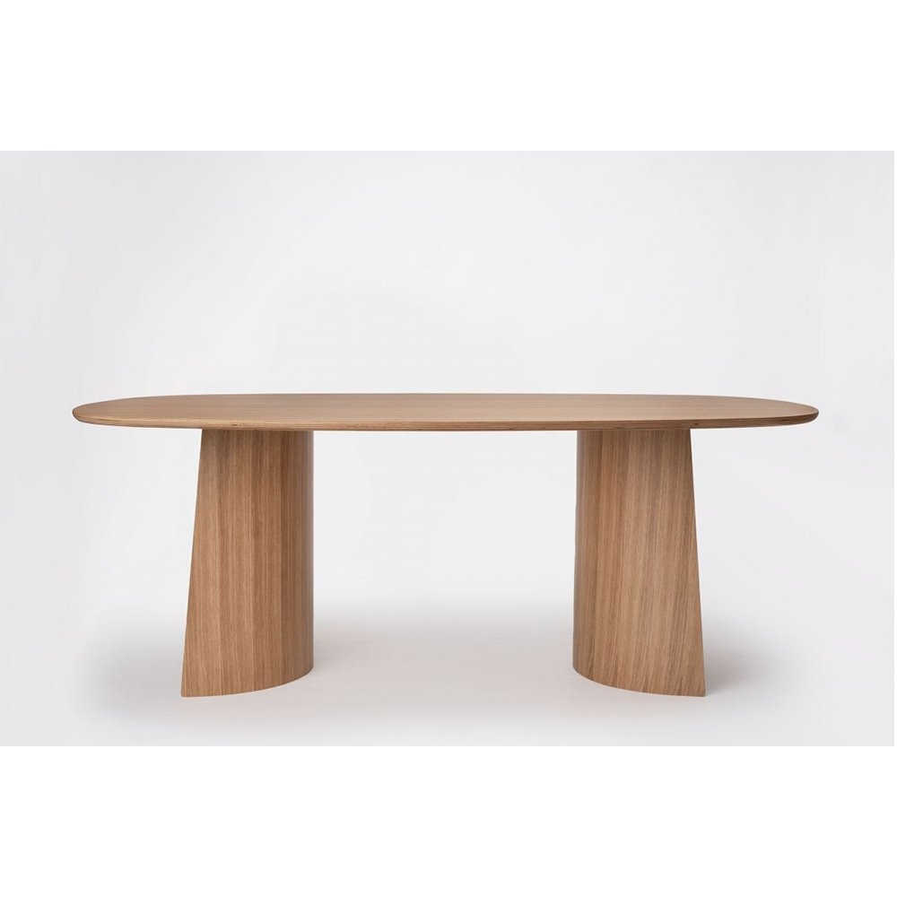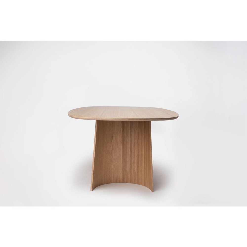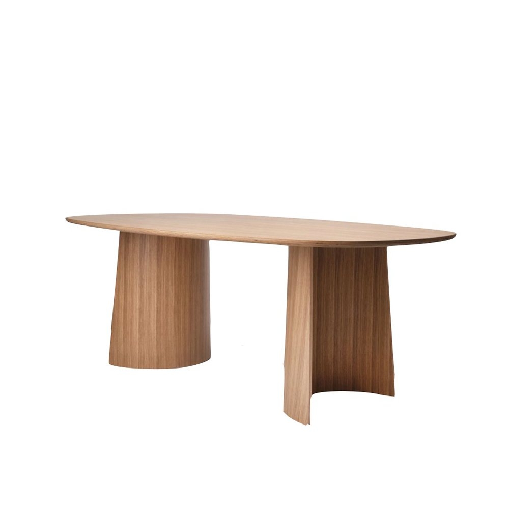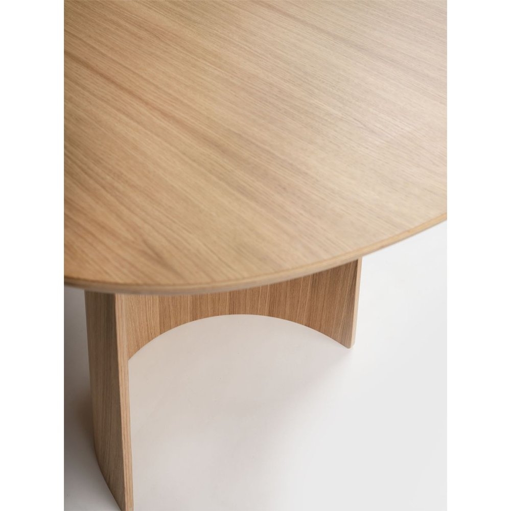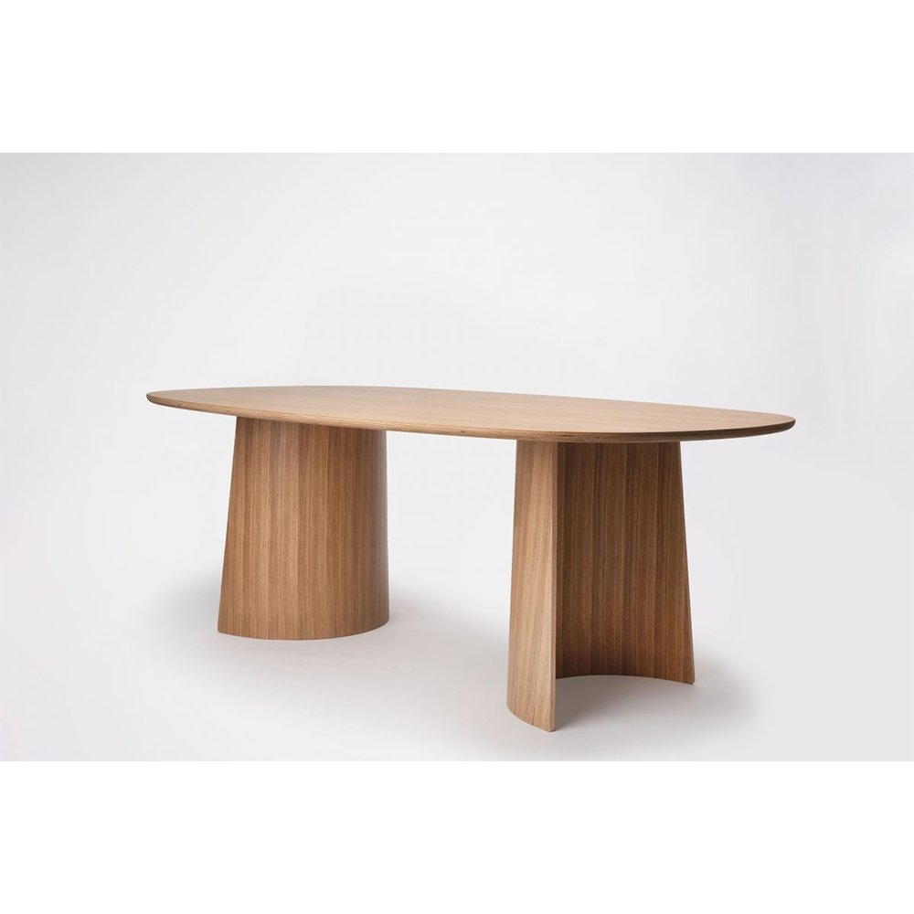 Ginger 餐桌的設計將工藝與技術融為一體。這款桌子有不同的高度可供選擇,其腿部的複雜木質弧度和桌面的圓形形狀使其脫穎而出。