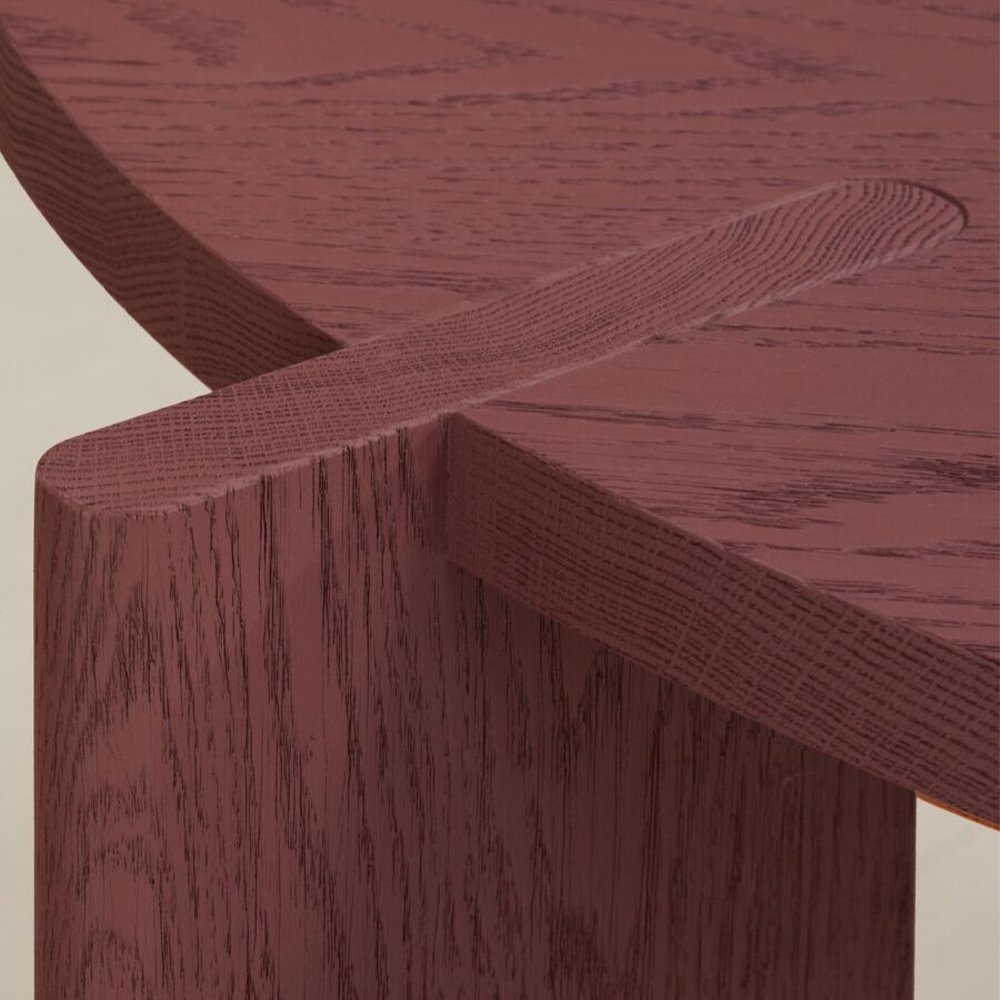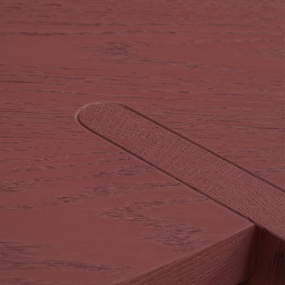 桌子有兩種木材可供選擇:柚木或美國紅橡木。柚木版本有 Phantom Hands 標誌性的天然柚木和深色染色飾面可供選擇。美國紅橡木版本有兩種飾面可供選擇 - 深藍色的焦鈷椰殼纖維和溫暖的紅色印度泥。暖紅色飾面的靈感來自季風期間班加羅爾和印度其他地方深紅色土壤的顏色;印度泥因此得名。紅橡木版本用鋼刷輕輕刷洗,賦予木材一些紋理,並襯托出天然紋理的美麗。