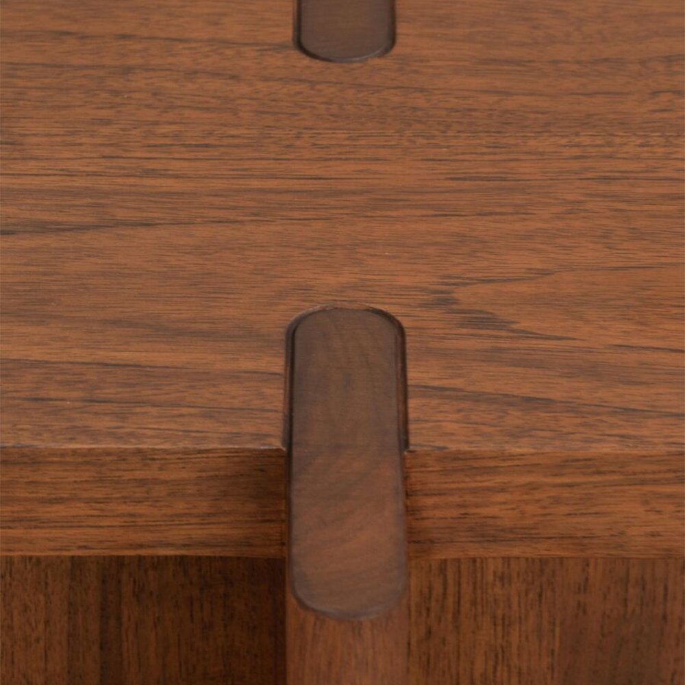 凳子有兩種木材可供選擇:柚木或美國紅橡木。柚木版本有 Phantom Hands 標誌性的天然柚木和深色染色飾面可供選擇。美國紅橡木版本有兩種飾面可供選擇 - 深藍色的焦鈷椰殼纖維和溫暖的紅色印度泥。暖紅色飾面的靈感來自季風期間班加羅爾和印度其他地方深紅色土壤的顏色;印度泥因此得名。紅橡木版本用鋼刷輕輕刷洗,賦予木材一些紋理,並襯托出天然紋理的美麗。