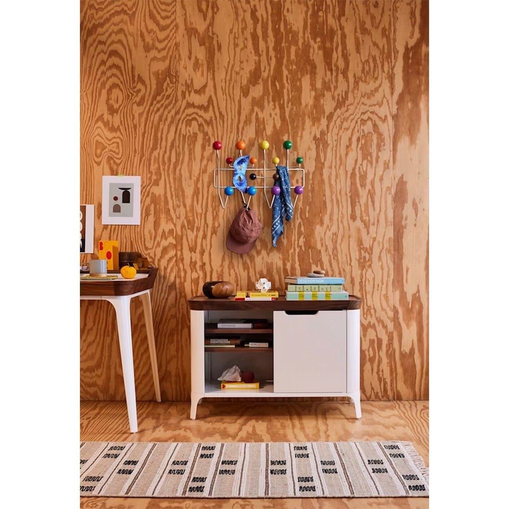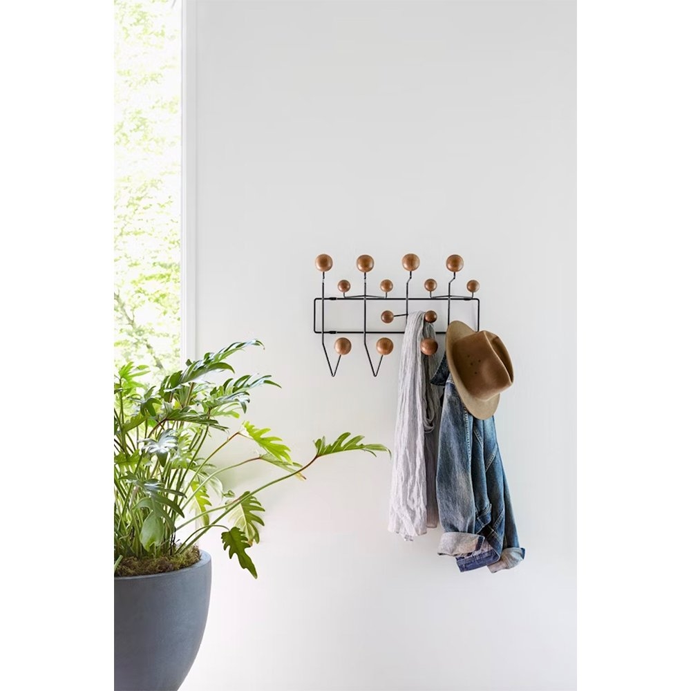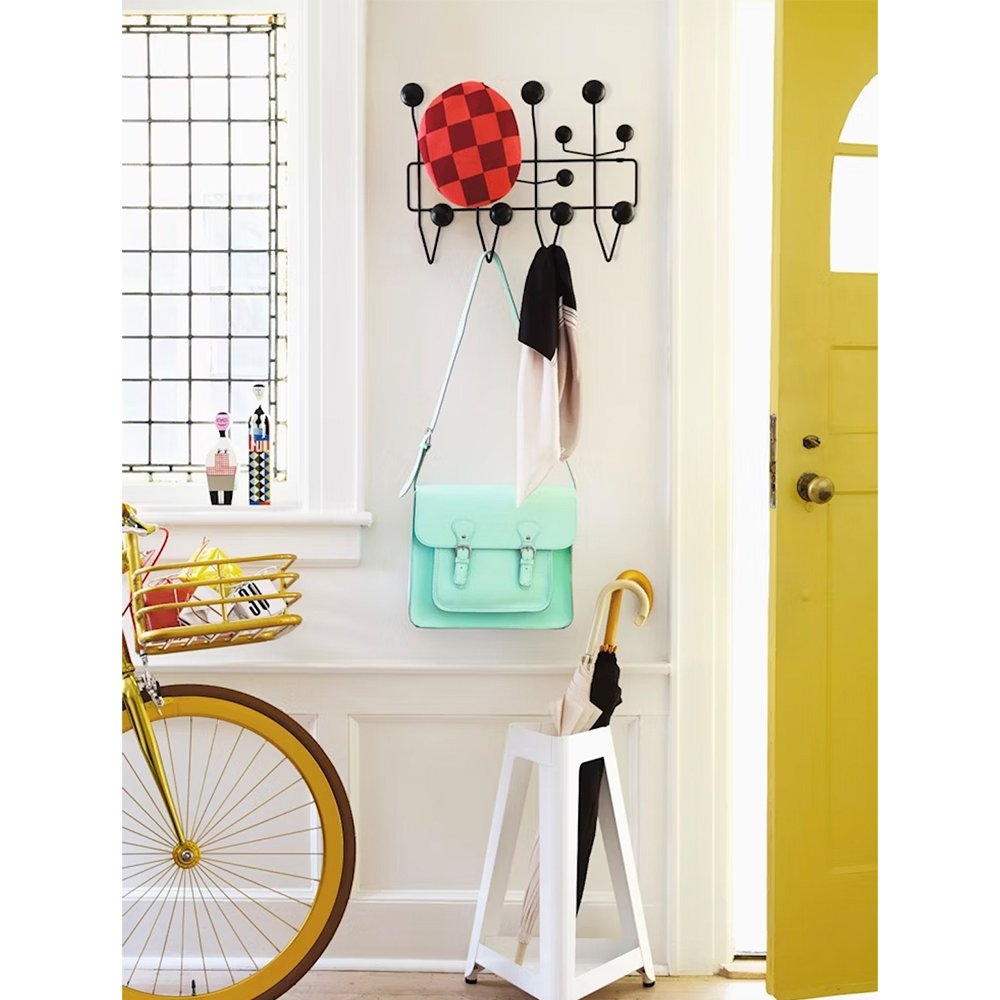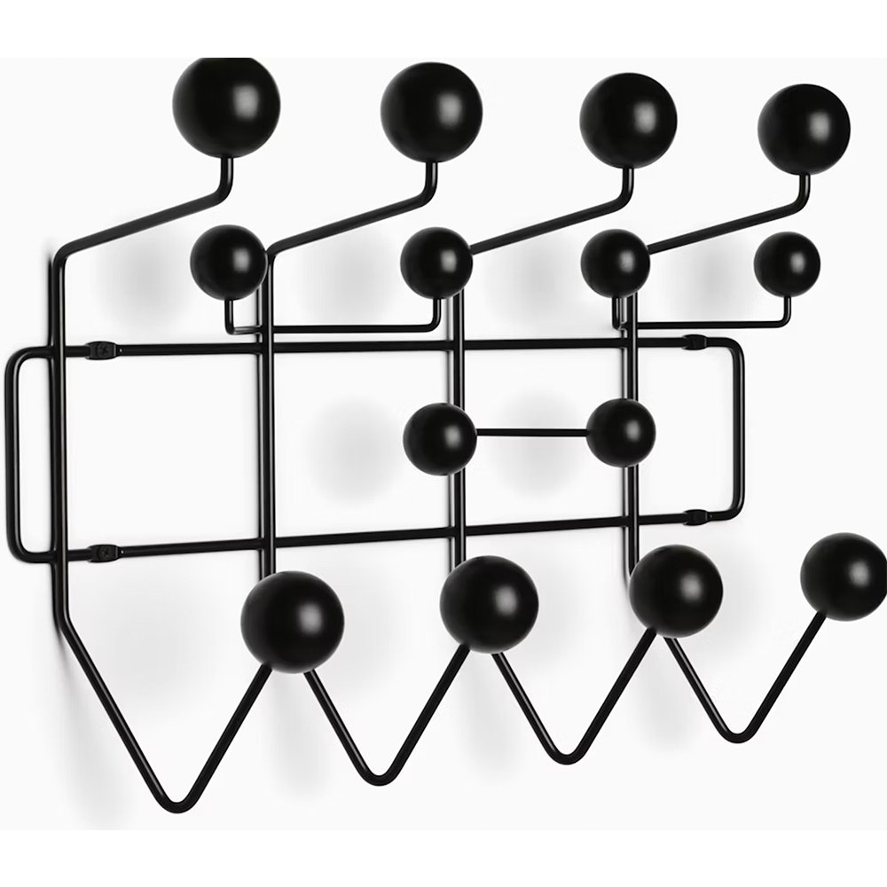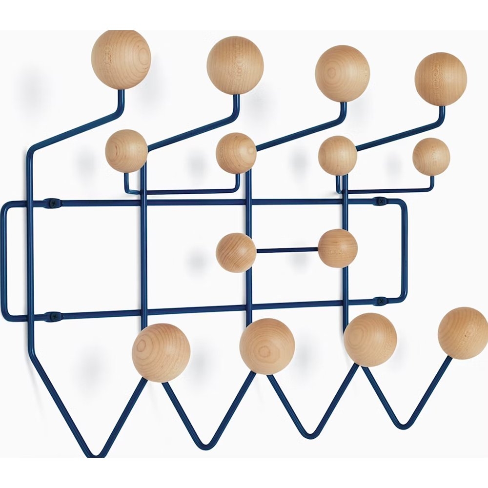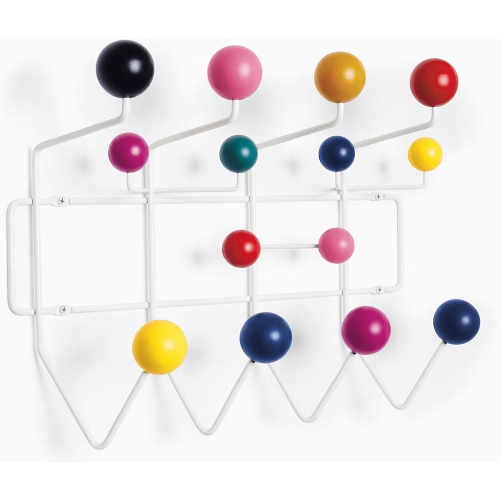 1920 世紀 40 年代中期,查爾斯·伊姆斯 (Charles Eames) 和雷·伊姆斯 (Ray Eames) 開始設計模壓膠合板動物、色彩繽紛的積木和異想天開的面具。查爾斯‧艾姆斯 (Charles Eames) 說:「我們必須認真對待快樂。」《Hang-It-All》(1953 年)就是這個理念的一個例子。設計採用堅固的鋼框架和實木球製成,採用與艾姆斯家族為矮桌和鋼絲椅開發的同時焊接電線相同的技術。他們最初為 Tigrett Enterprises 的 Playhouse Division 製作了 Hang-It-All,Herman Miller 於 1994 年重新發行了它。 Eames 是 Herman Miller 的授權商標。