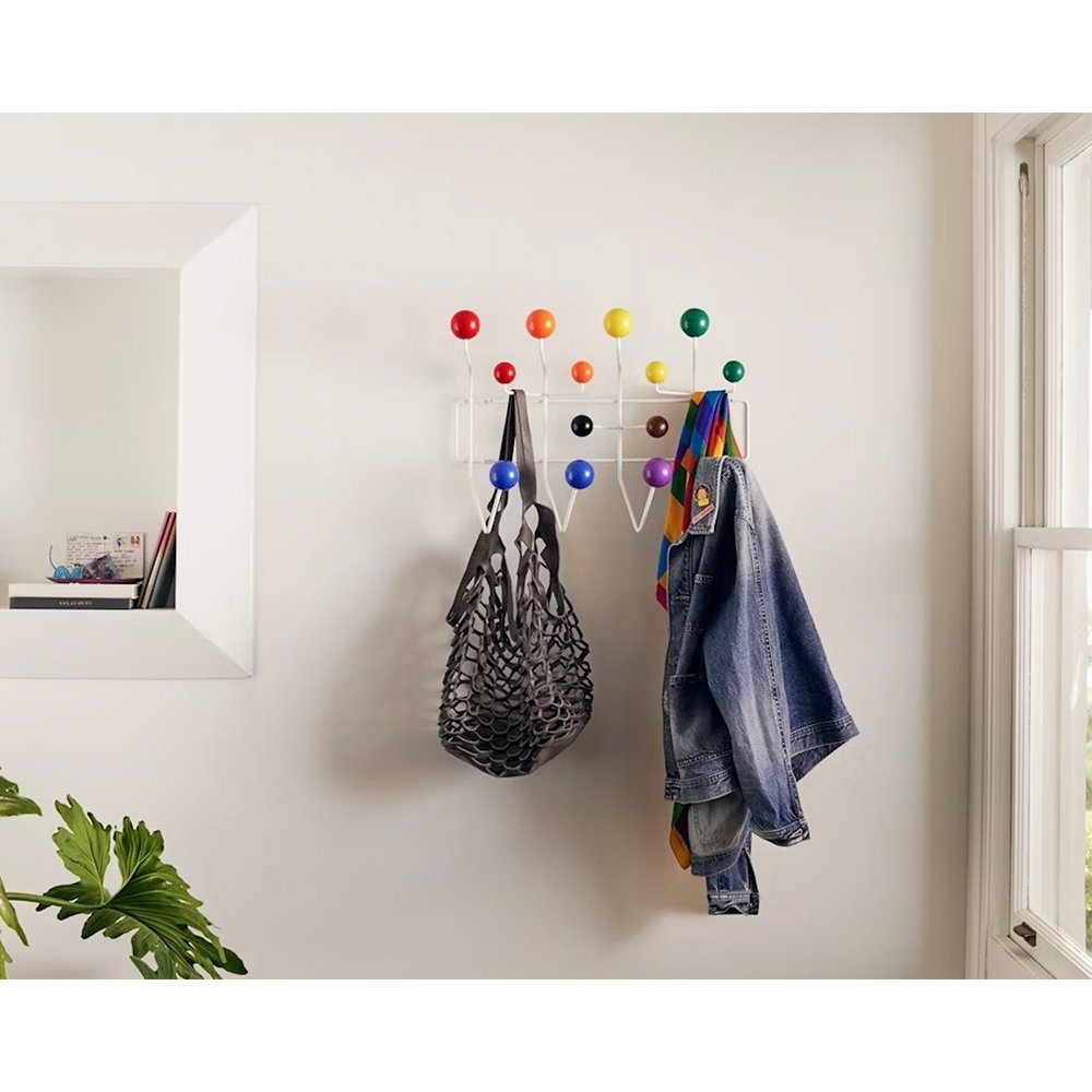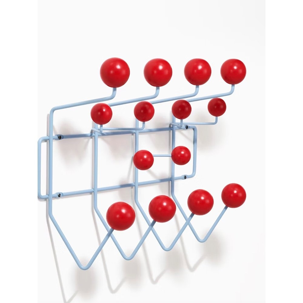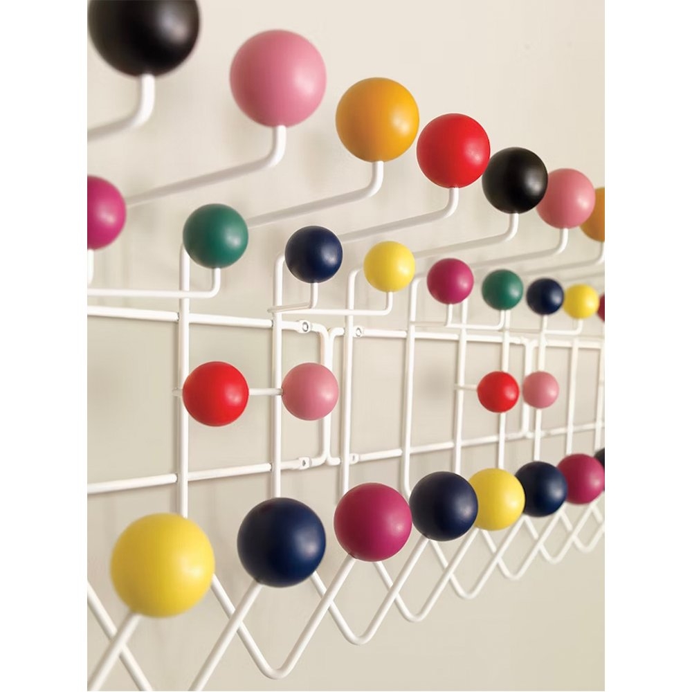 大膽的線條、相互連接的圓球、和五顏六色的繽紛用色表現出 Eames 夫婦的無限童心,為牆上的日常物品帶來了一些幽默感。在材料的新詮釋上,HAY 選用鑄造玻璃球體來取代原先的木材,並巧妙運用色彩、觸感和光線營造新穎透明的當代氛圍。