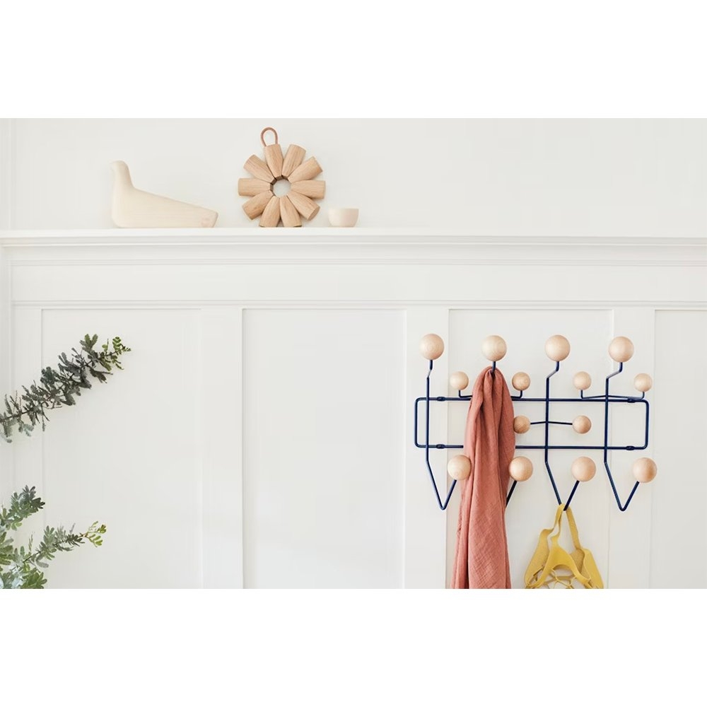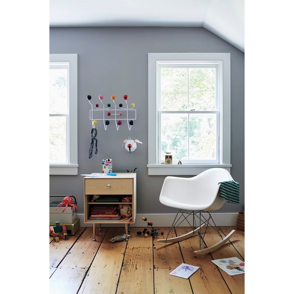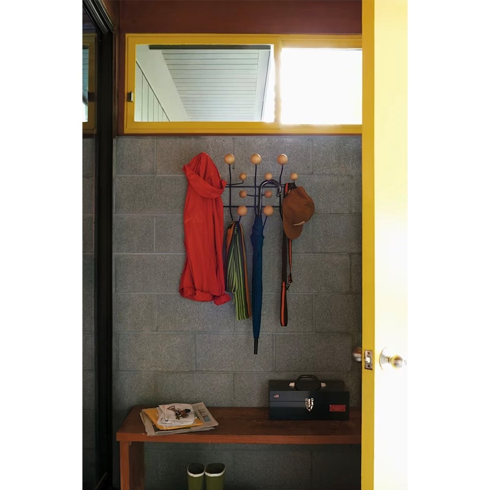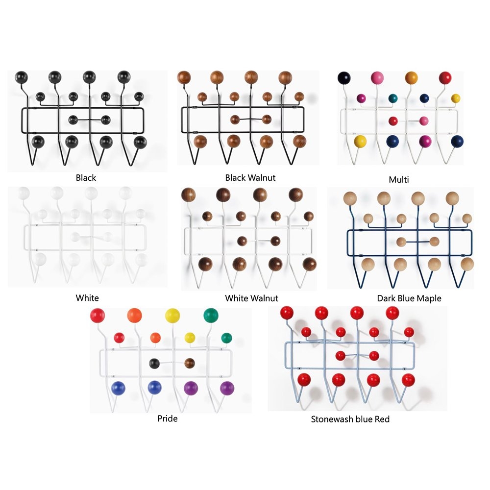 大膽的線條、相互連接的圓球、和五顏六色的繽紛用色表現出 Eames 夫婦的無限童心,為牆上的日常物品帶來了一些幽默感。在材料的新詮釋上,HAY 選用鑄造玻璃球體來取代原先的木材,並巧妙運用色彩、觸感和光線營造新穎透明的當代氛圍。