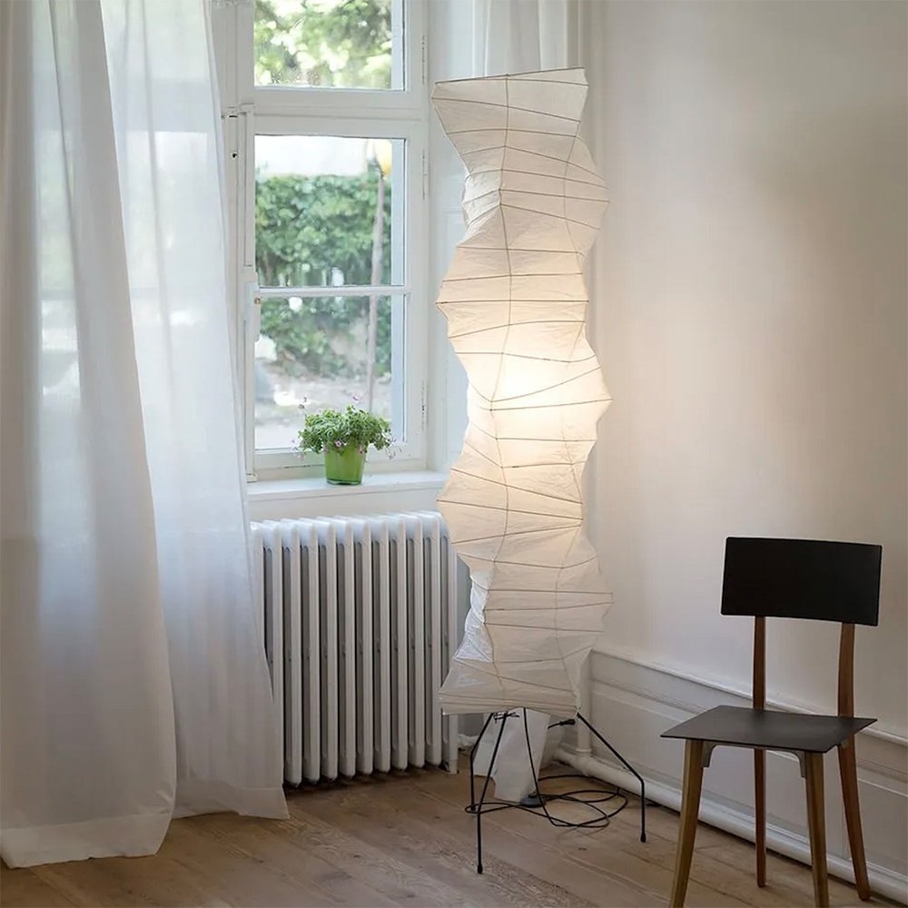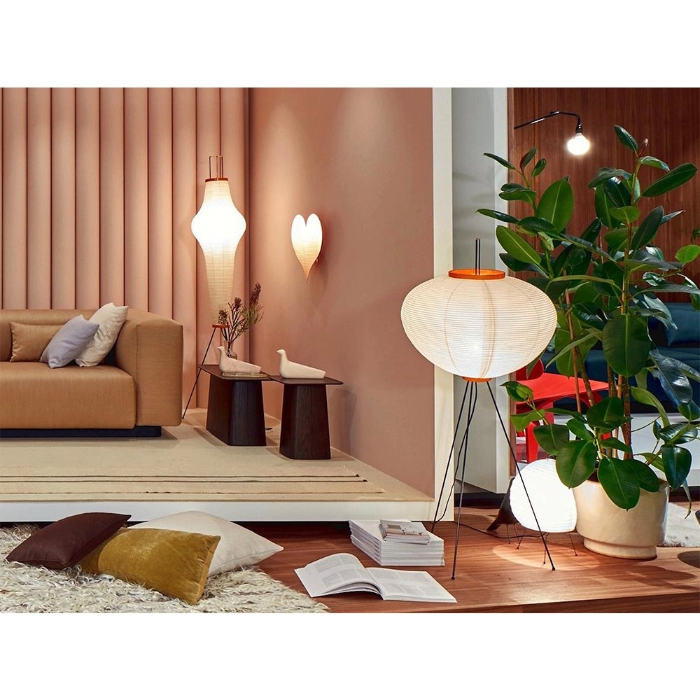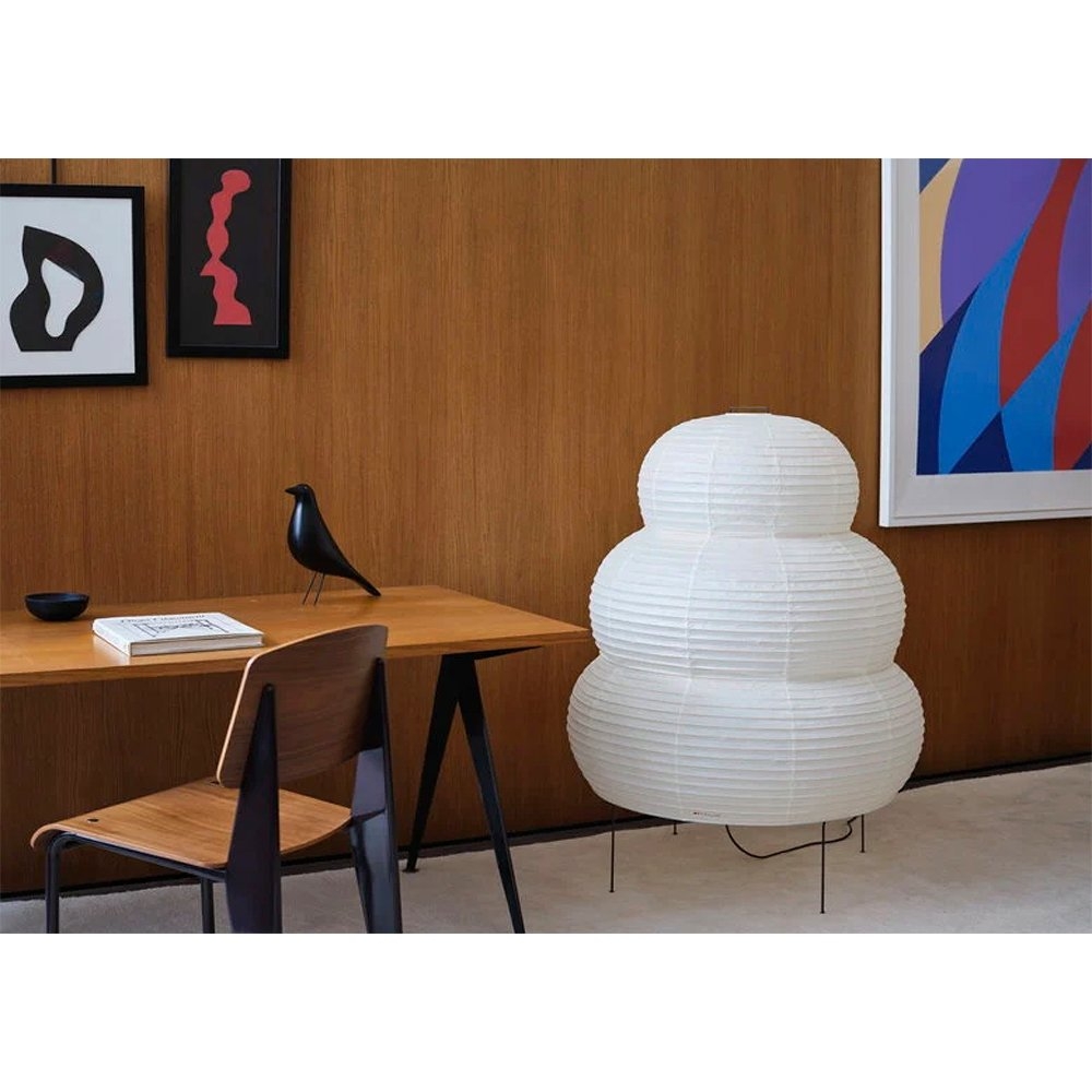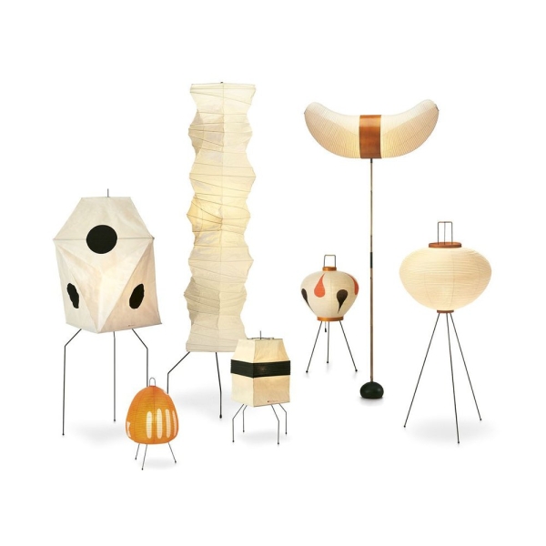1951年,野口勇開始設計“Akari Light Sculptures”,其作品以失重的發光為特徵。他為這些物體選擇了“akari”這個名字,這個詞在日語中的意思是“光”,意味著照明和物理亮度。在日本旅行期間,野口參觀了以紙陽傘和燈籠製造而聞名的岐阜縣。在那裡,他繪製了最初的兩個 Akari 燈雕塑,在接下來的幾年裡,他總共創作了 100 多個模型,包括尺寸從 24 公分到 290 公分不等的檯燈、落地燈和吸頂燈。