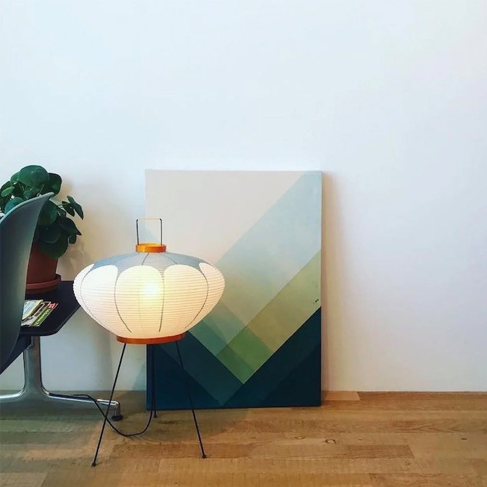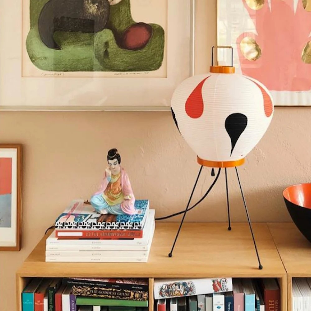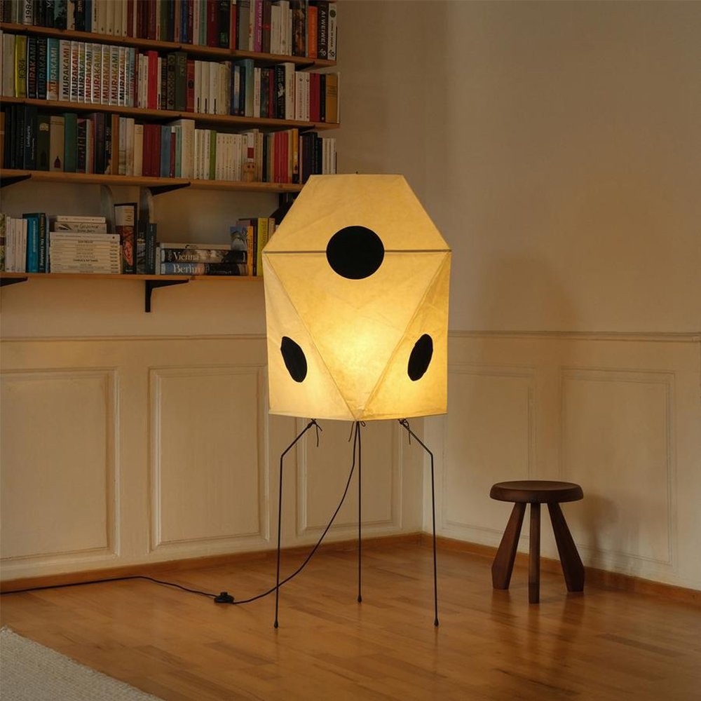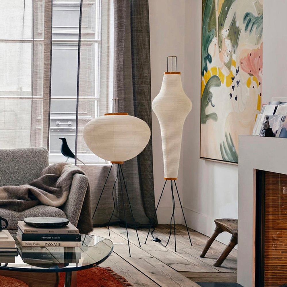 1951年,野口勇開始設計“Akari Light Sculptures”,其作品以失重的發光為特徵。他為這些物體選擇了“akari”這個名字,這個詞在日語中的意思是“光”,意味著照明和物理亮度。在日本旅行期間,野口參觀了以紙陽傘和燈籠製造而聞名的岐阜縣。在那裡,他繪製了最初的兩個 Akari 燈雕塑,在接下來的幾年裡,他總共創作了 100 多個模型,包括尺寸從 24 公分到 290 公分不等的檯燈、落地燈和吸頂燈。