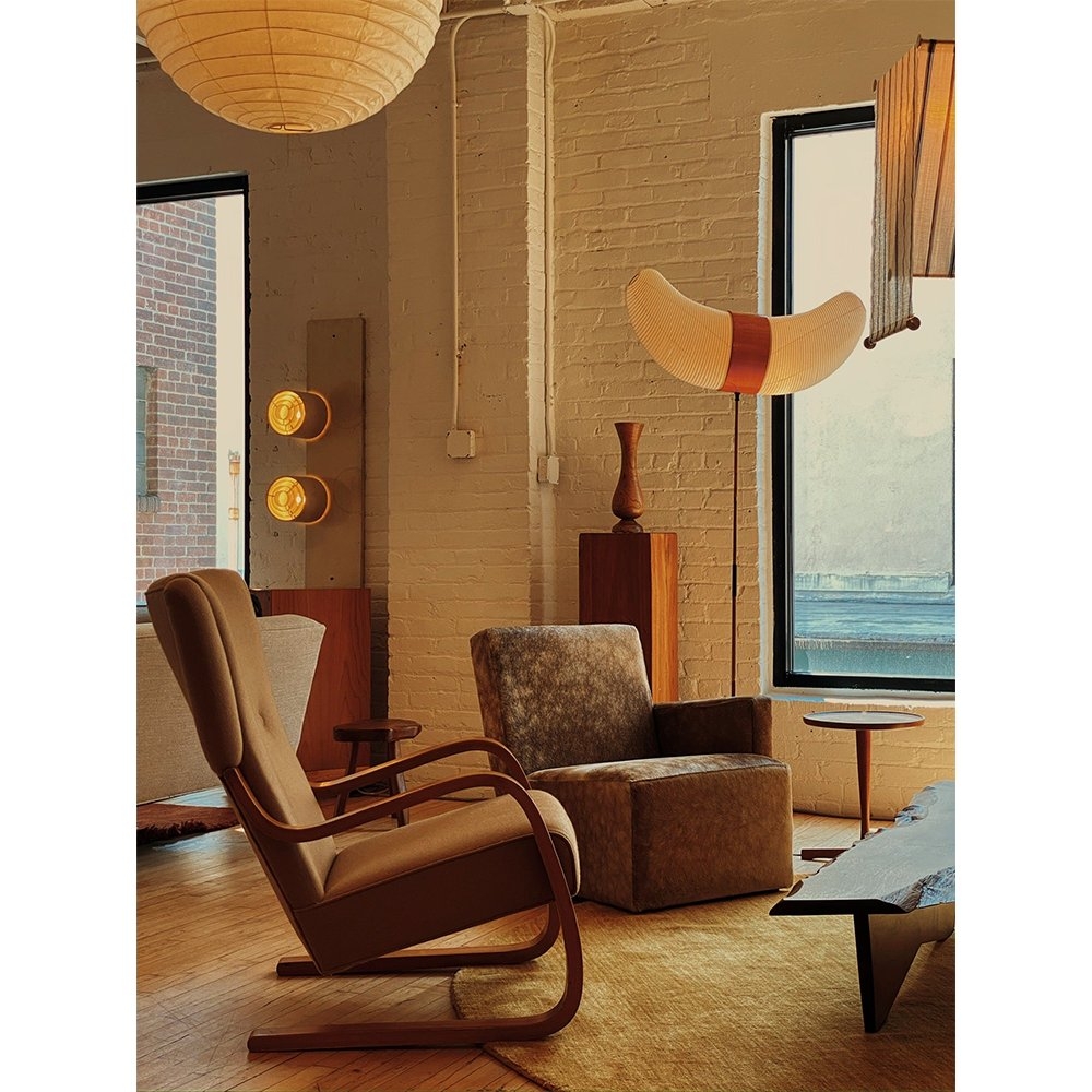 日裔美國藝術家兼設計師 Isamu Noguchi(1904-1988)的作品異常多面。除了雕塑之外,他還創作舞台佈景、家具、燈光和室內裝飾,以及戶外廣場和花園。作為一名雕塑家,他的興趣不僅限於材料和形式,還擴展到空間效果和室內設計。野口希望他的藝術能夠服務於實用和社會功能,他的雕塑風格對 20 世紀 50 年代的有機設計風格產生了持久的影響。