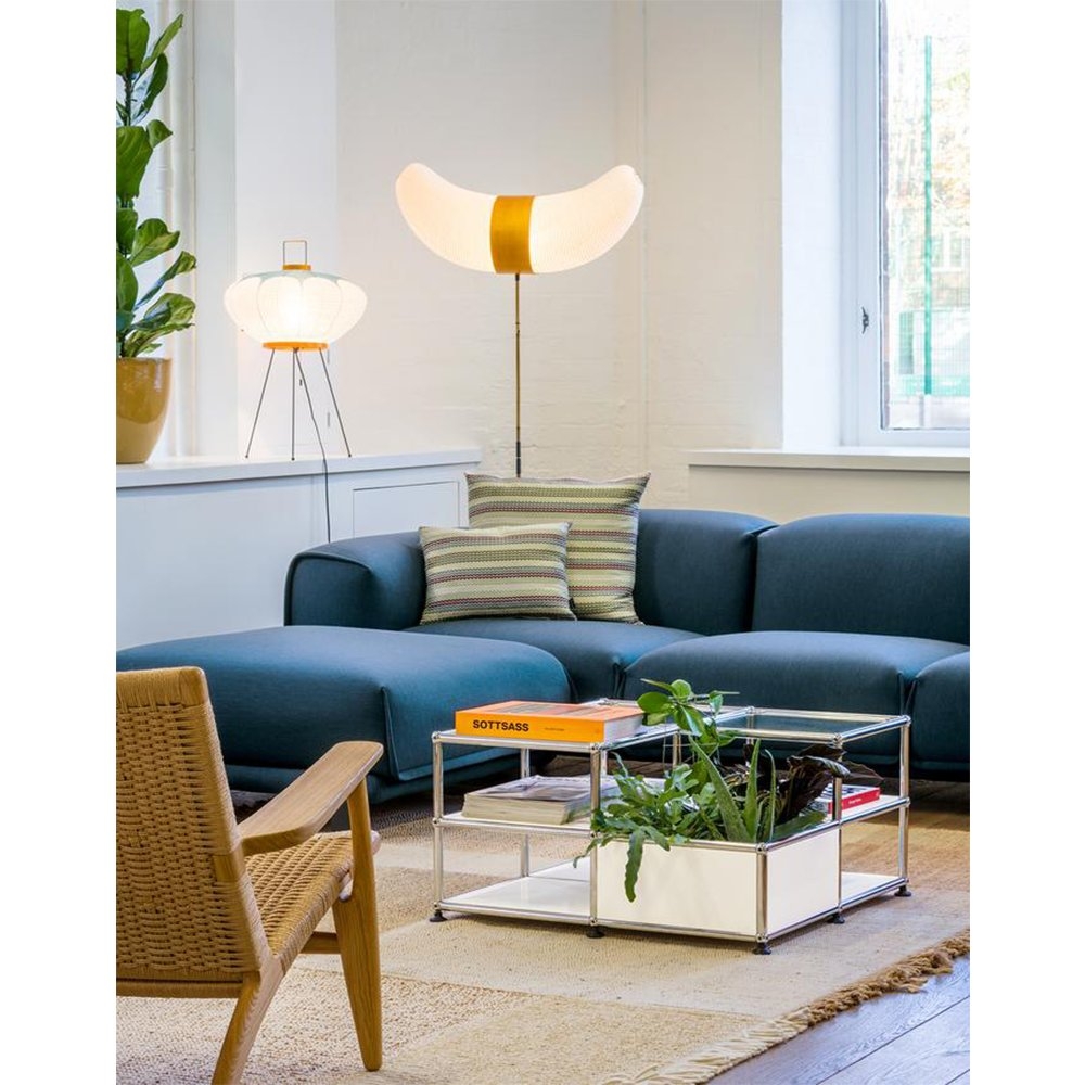 每個燈具均在位於岐阜的傳統家族企業 Ozeki 工作室手工精心製作。第一步,將竹桿拉伸到野口設計的原始木質結構上,形成決定物體形狀的框架。和紙取自桑樹皮,被切成條狀以適合燈的尺寸和形狀,然後粘在竹肋上。膠水乾燥後,取下木模,即可折疊燈罩。 Akari Light Sculptures 採用專為燈具開發的扁平盒子進行運輸或儲存。