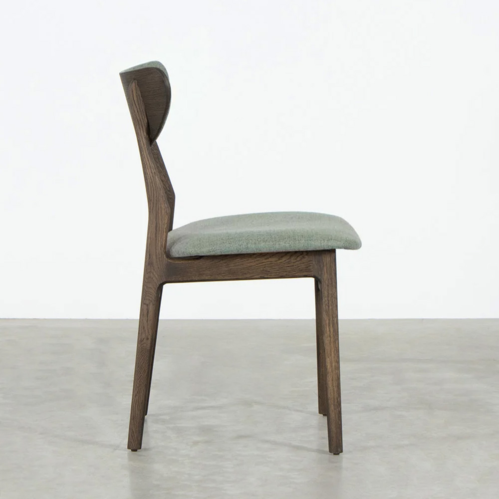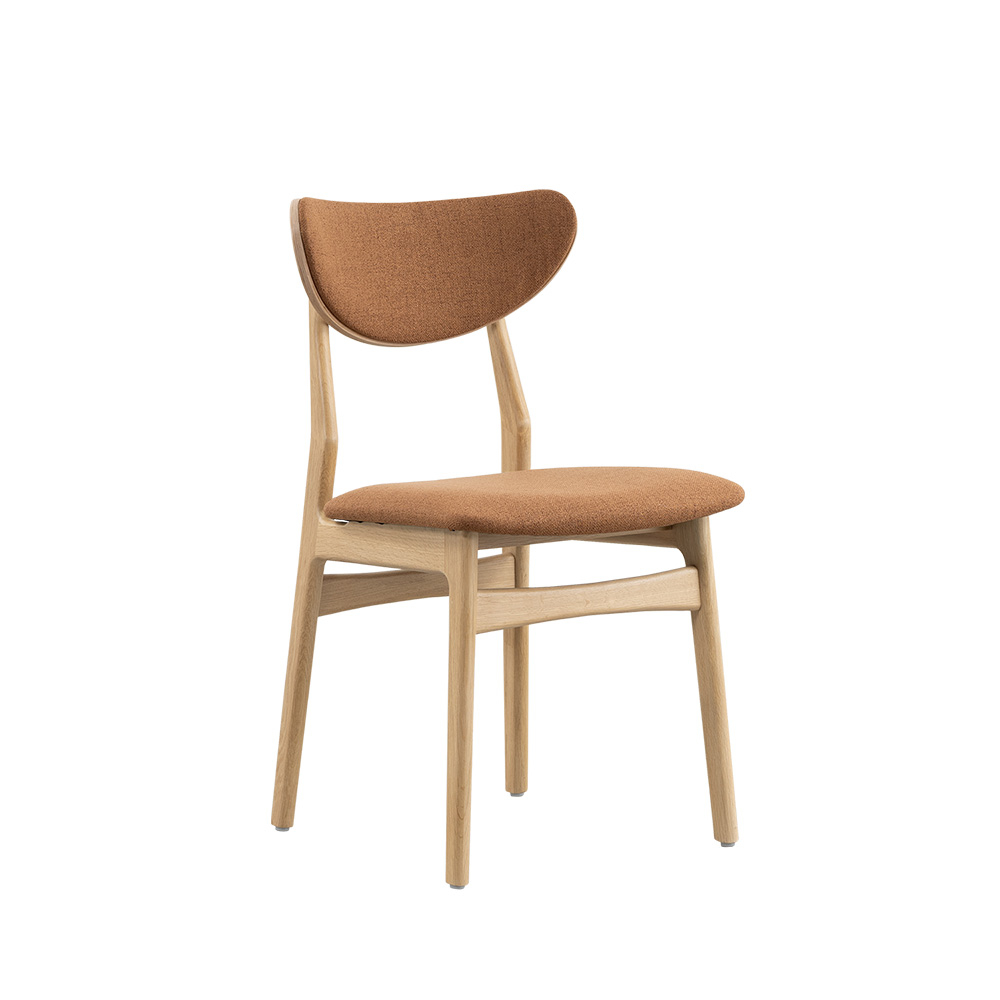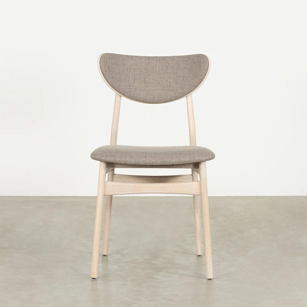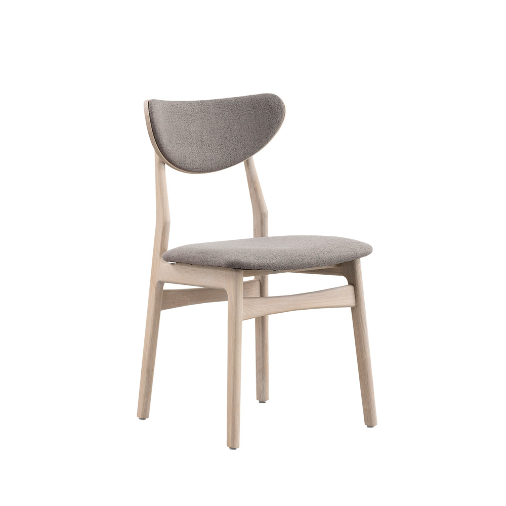 Enni 餐椅以簡潔的結構與舒適的包覆坐墊呈現出純粹的設計語言。椅背外緣那條細緻可見的木質邊框,為整體造型增添層次感。柔軟的布面讓人一坐下就感受到溫暖與放鬆,讓用餐時光自然延長。