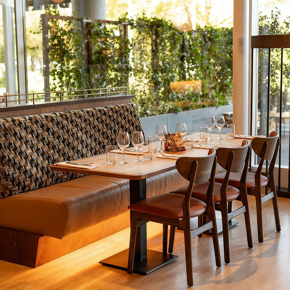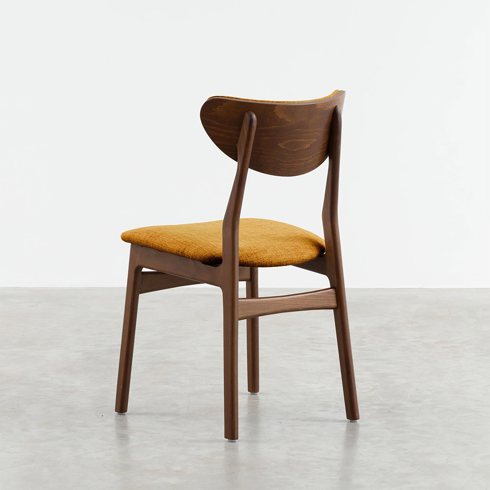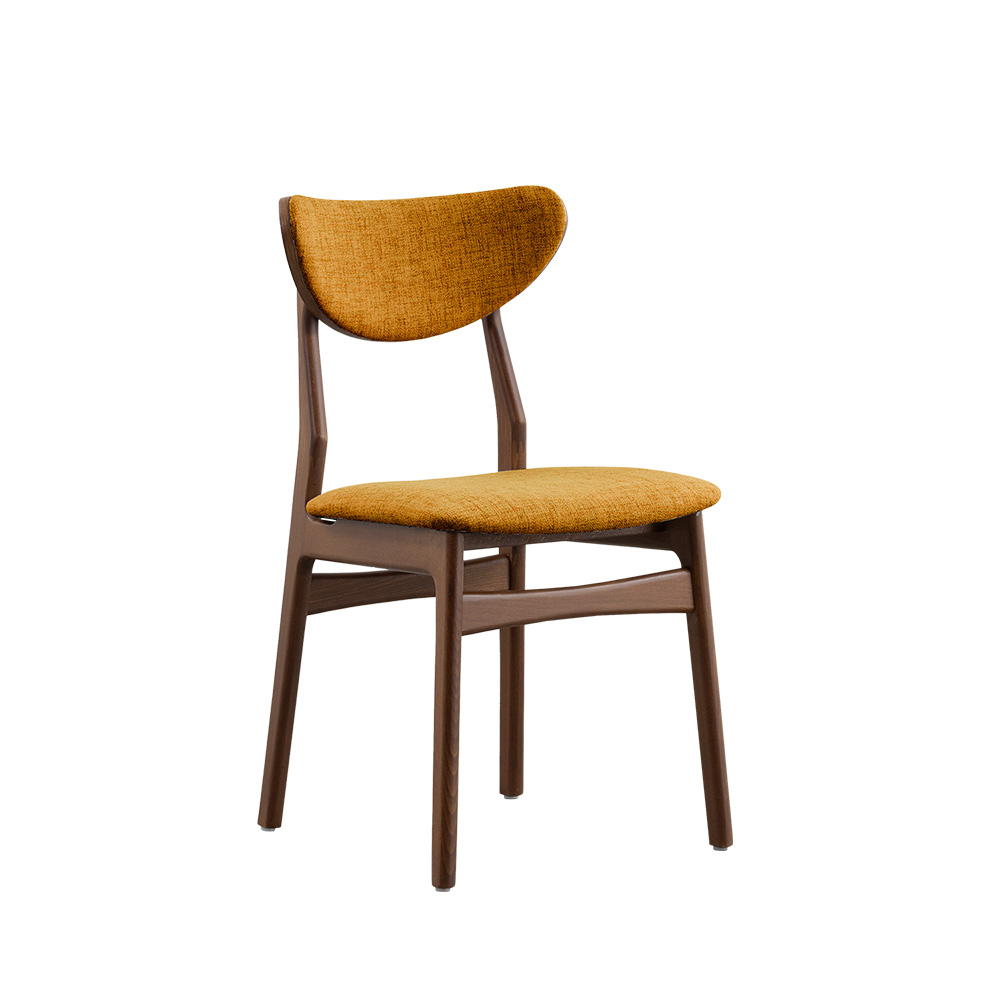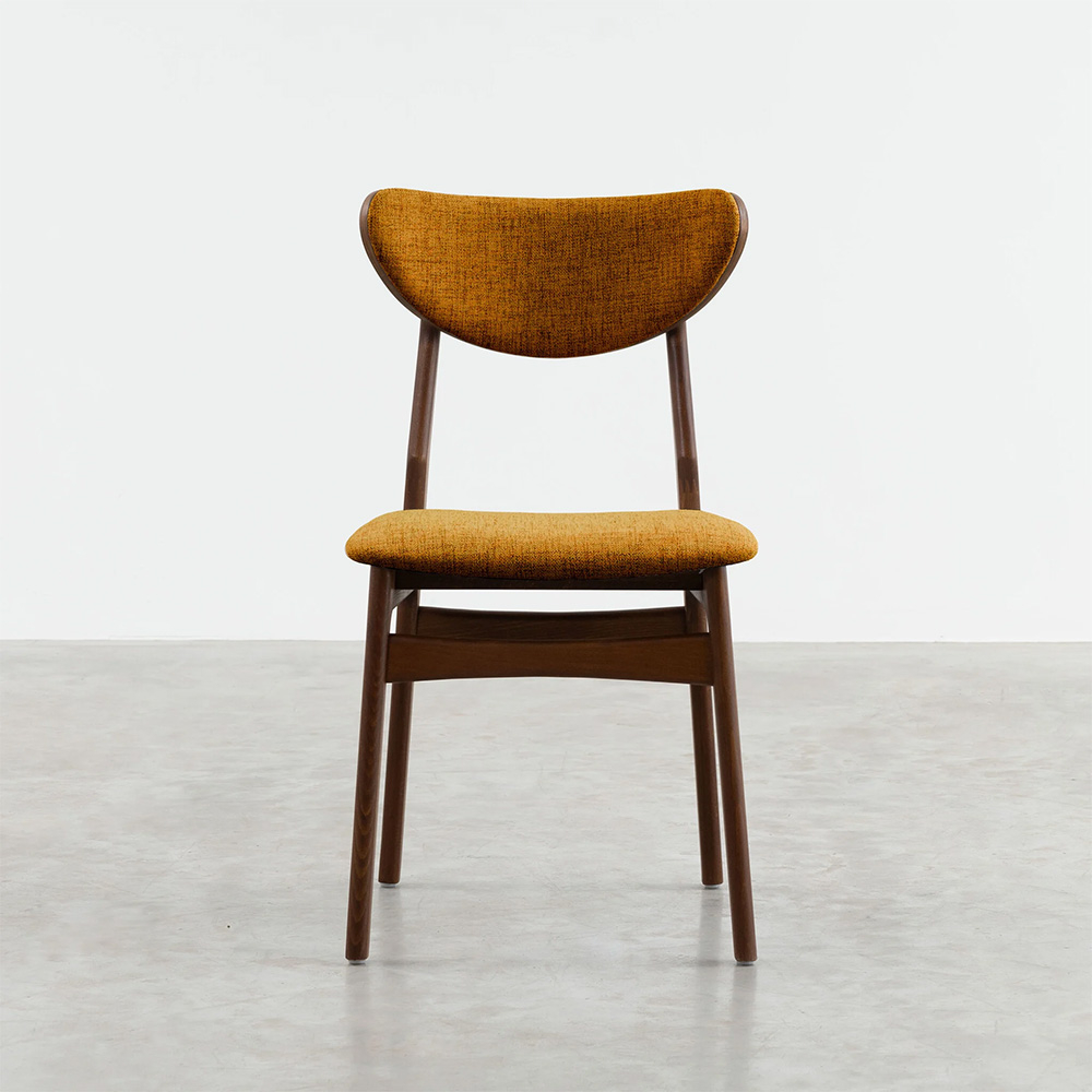 Enni 餐椅以簡潔的結構與舒適的包覆坐墊呈現出純粹的設計語言。椅背外緣那條細緻可見的木質邊框,為整體造型增添層次感。柔軟的布面讓人一坐下就感受到溫暖與放鬆,讓用餐時光自然延長。