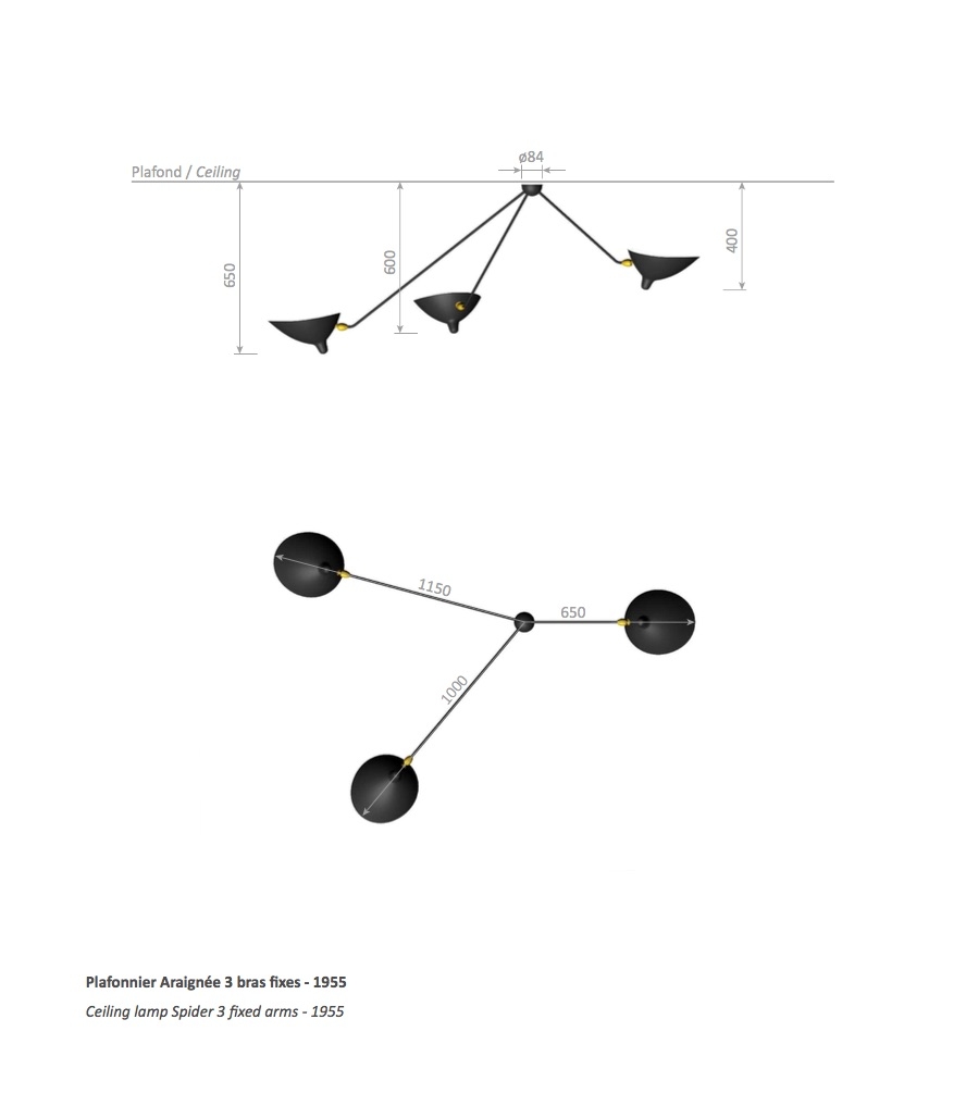 MC-04 吸頂式三臂吊燈 Ceiling lamp Spider 3 fixed arms - 1955
