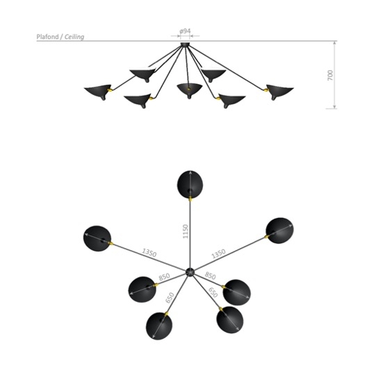 MC-06 吸頂式七臂吊燈 Ceiling lamp Spider 7 fixed arms - 1953