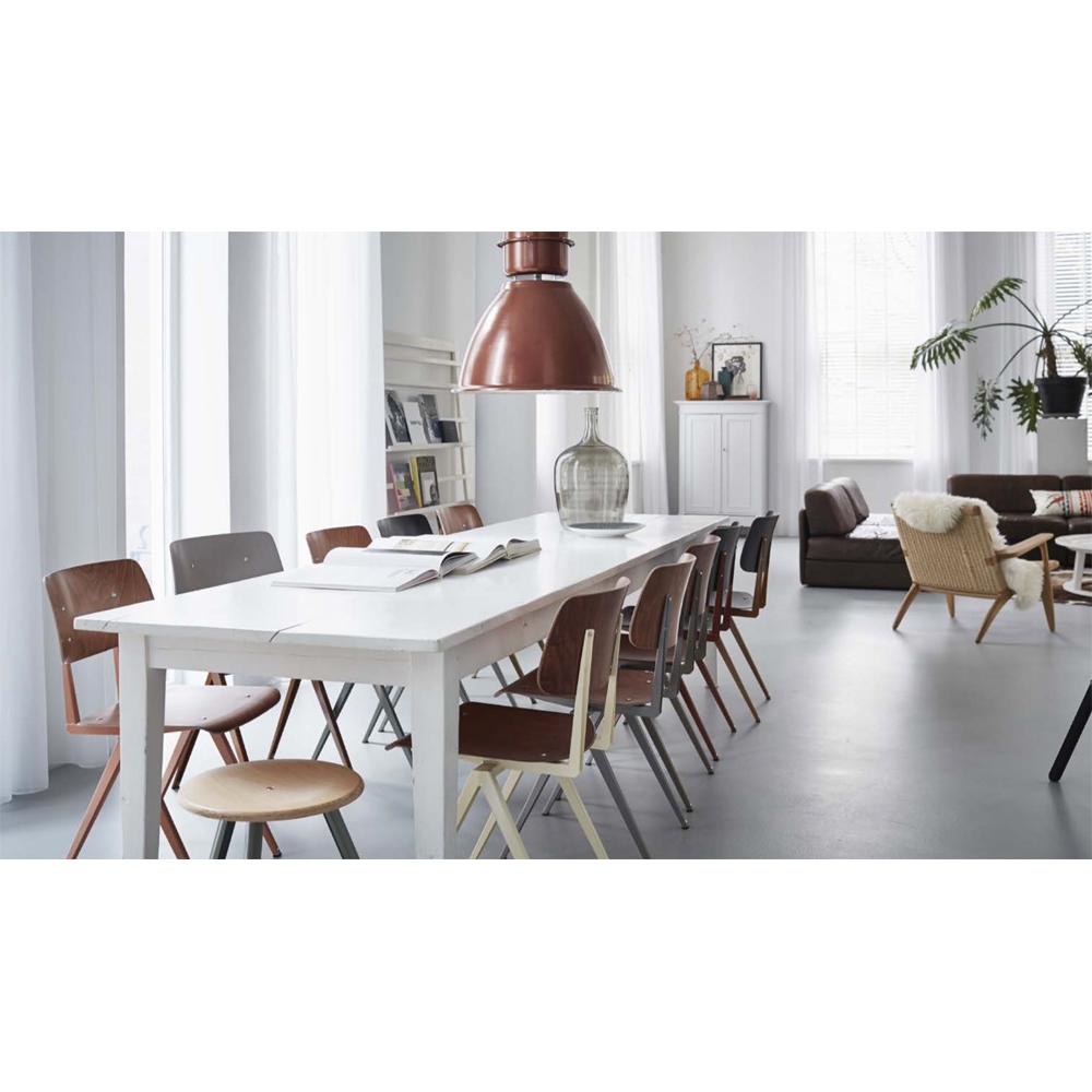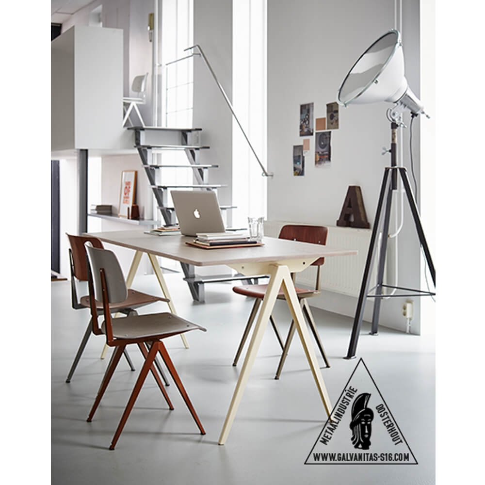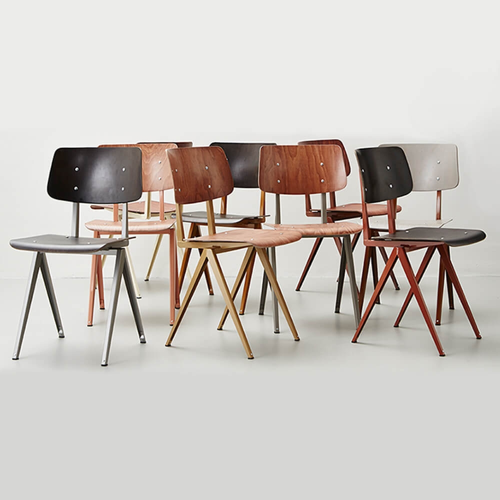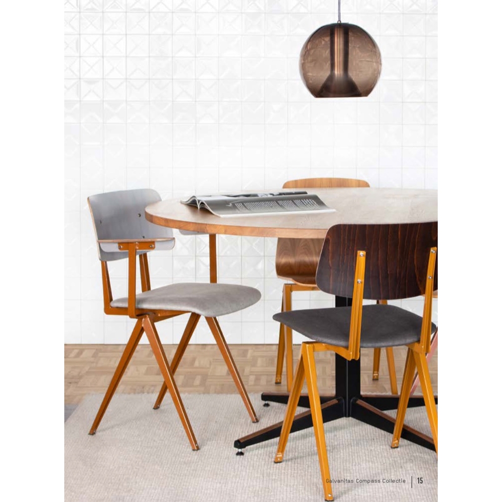 說S16是荷蘭品牌Galvanitas最經典的作品一點也不為過!這張紅極一時,完美捕捉60年代教室風情的座椅,極簡的設計風格,帶出一抹當代工業風的跨時代縮影。Galvanitas 大膽顛覆當時風行的鋼管設計,進而採用壓制鋼材製作指針狀椅架造型,在當時可謂是跨時代的創舉。時至今日,不論是在荷蘭本土或者國際舞台上,S16儼然已經成為流行文化指標以及前衛荷蘭工業風的代名詞。全系列有六色椅面及八色腳架可供選擇搭配,或黑或白,或粉或黃,多彩的繽紛選擇絕對是您創造時髦空間不可或缺的傢俱逸品!
