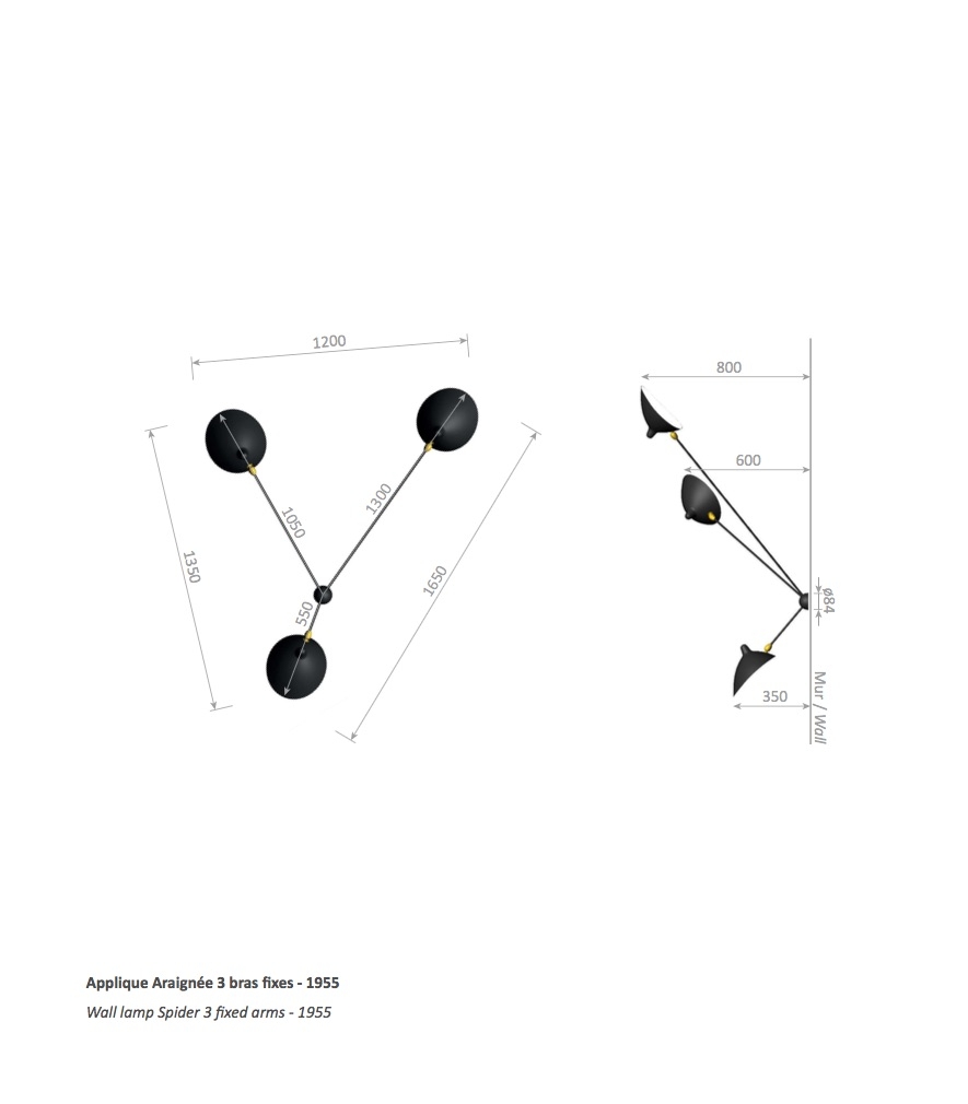 MSP-01 三臂蜘蛛壁燈 Wall lamp Spider 3 fixed arms - 1955