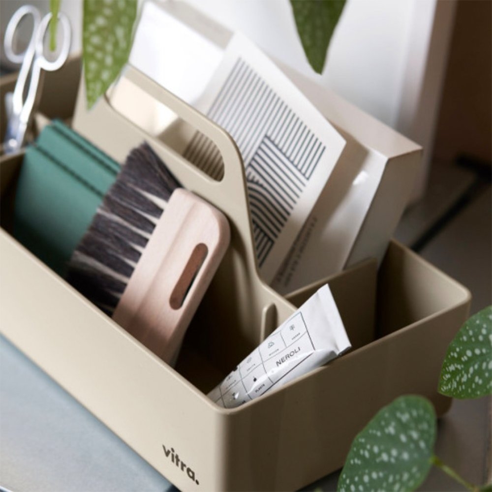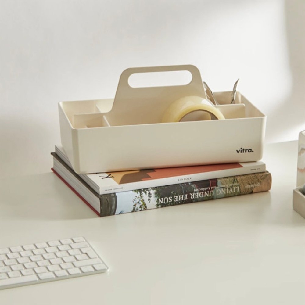 你需要的是一個收納盒,不,你需要的是「提著走小物收納盒」!長短寬窄的分隔欄方便收納各種小東西,隨意收拾丟進去,無論怎麼看都清爽;平時將它們收藏在層架櫥櫃裡,需要時單手一提就能派上用場。