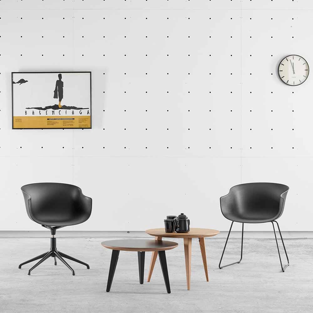 BAI 旋轉椅是巴斯克語YES的意思,以口語形式上來說它傳遞了一個充滿積極、正向的訊息。樣式上則充滿了有機型態,彎曲曲面和凹凸構成座面,為使用者提供了舒適的包覆感。扶手到椅腳的交叉建構出完美的平衡比例,除了結構上的穩固來說,還提供了視覺上的美感感受。BAI可以被擺放在各種空間,用餐區、咖啡館到接待處休息區都很適合。