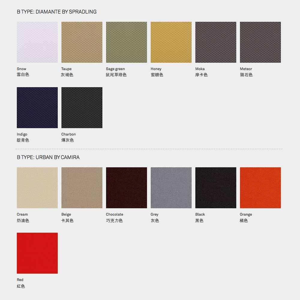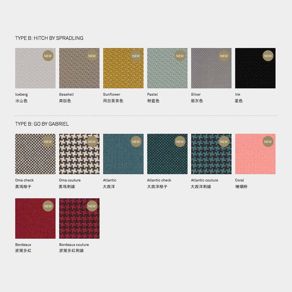 有多種布料、皮革及顏色可供選擇,請參考材質表