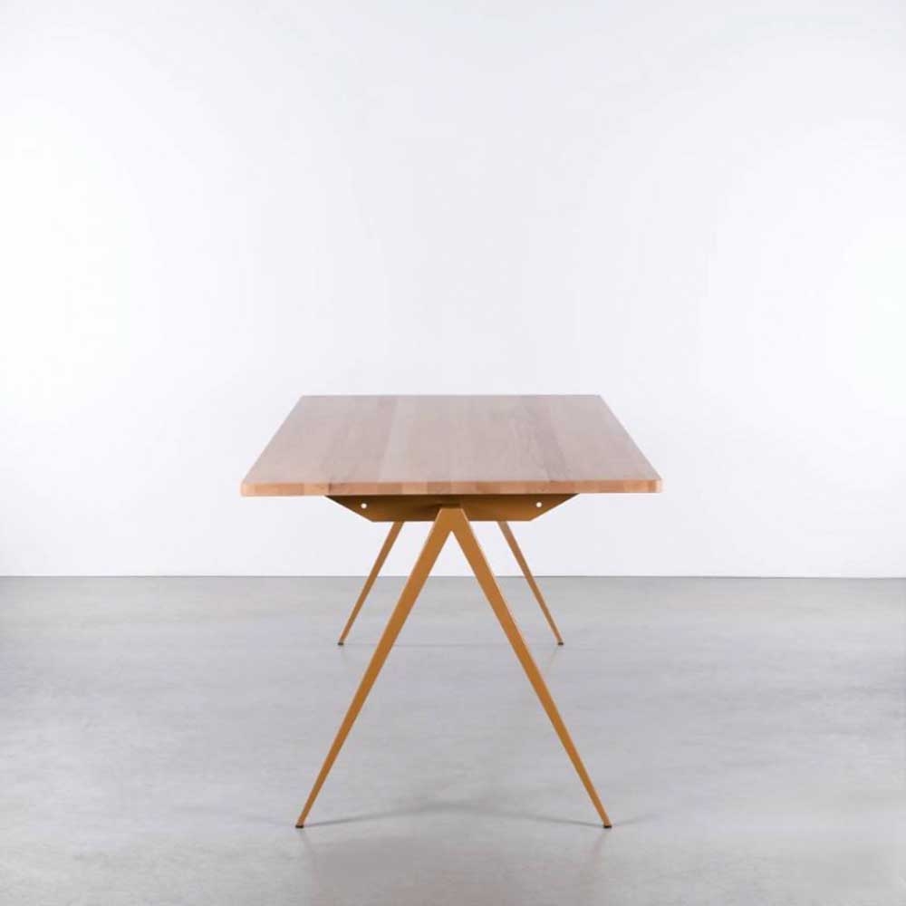 TD4 Table 可以說是一張相當特別的桌子,是根據1960年代的金屬學生桌為原型設計的桌子,現在則演變為一張具有現代感的實木和金屬框架的餐桌。極簡的設計在細節上完全不馬虎,實木拼裝而成的桌面光滑細緻,線條比例纖細優雅的桌腳,良好的質感與簡約風格適合各式各樣的空間。