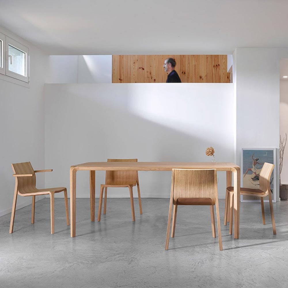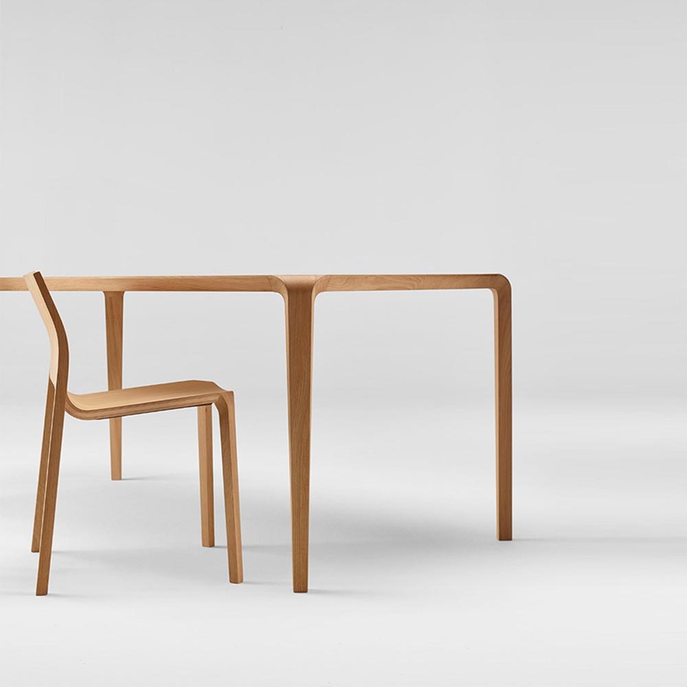 為了突出桌椅的輪廓,UNStudio 和 Ondarreta 結合了傳統曲木技術和當代設計。這件作品甚具突破性,將功能型的人體工學表面轉化成結構框架的一部分,在尖角和曲線間,加入了圓滑邊界讓每一條線都互相連接,賦予了同等的重要性。這套多用途桌椅組合用途廣泛,使用在教育、接待、會議和餐飲空間都很適合。為了提高靈活性,滿足不同環境的需求,我們除了採取更耐用的設計,使椅子可被堆疊收納,更可選擇要不要搭配扶手。