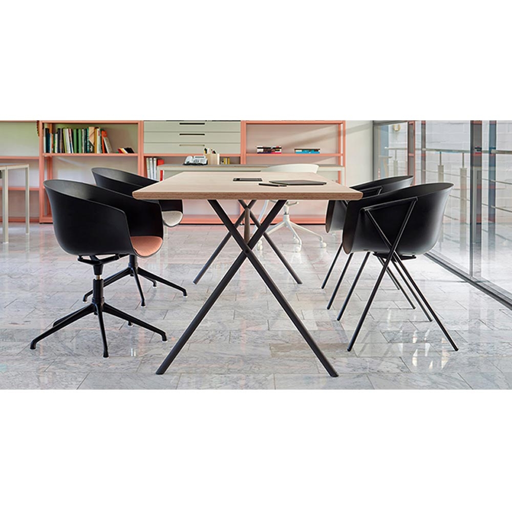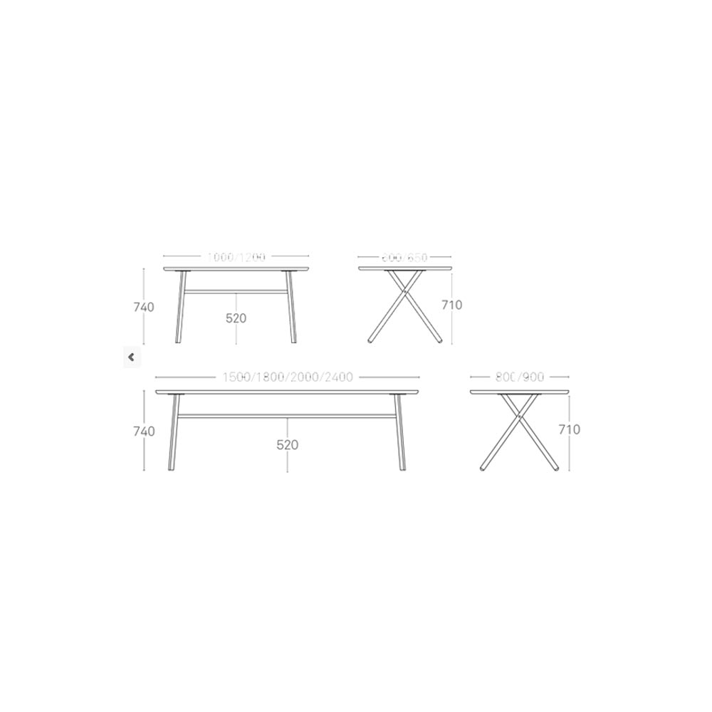 BAI 是巴斯克語YES的意思,以口語形式上來說它傳遞了一個充滿積極、正向的訊息。樣式上保留了跟Bai系列椅子相似的交叉特色,腳座有分木頭和金屬版本,是張充滿了簡約和現代感的桌子。