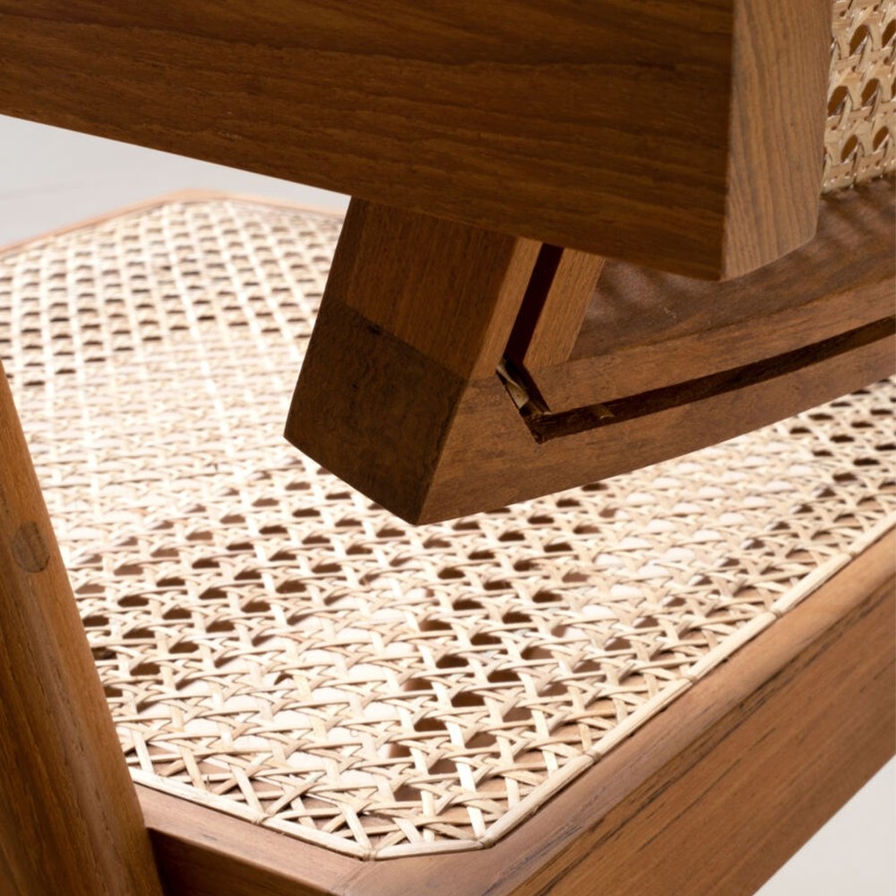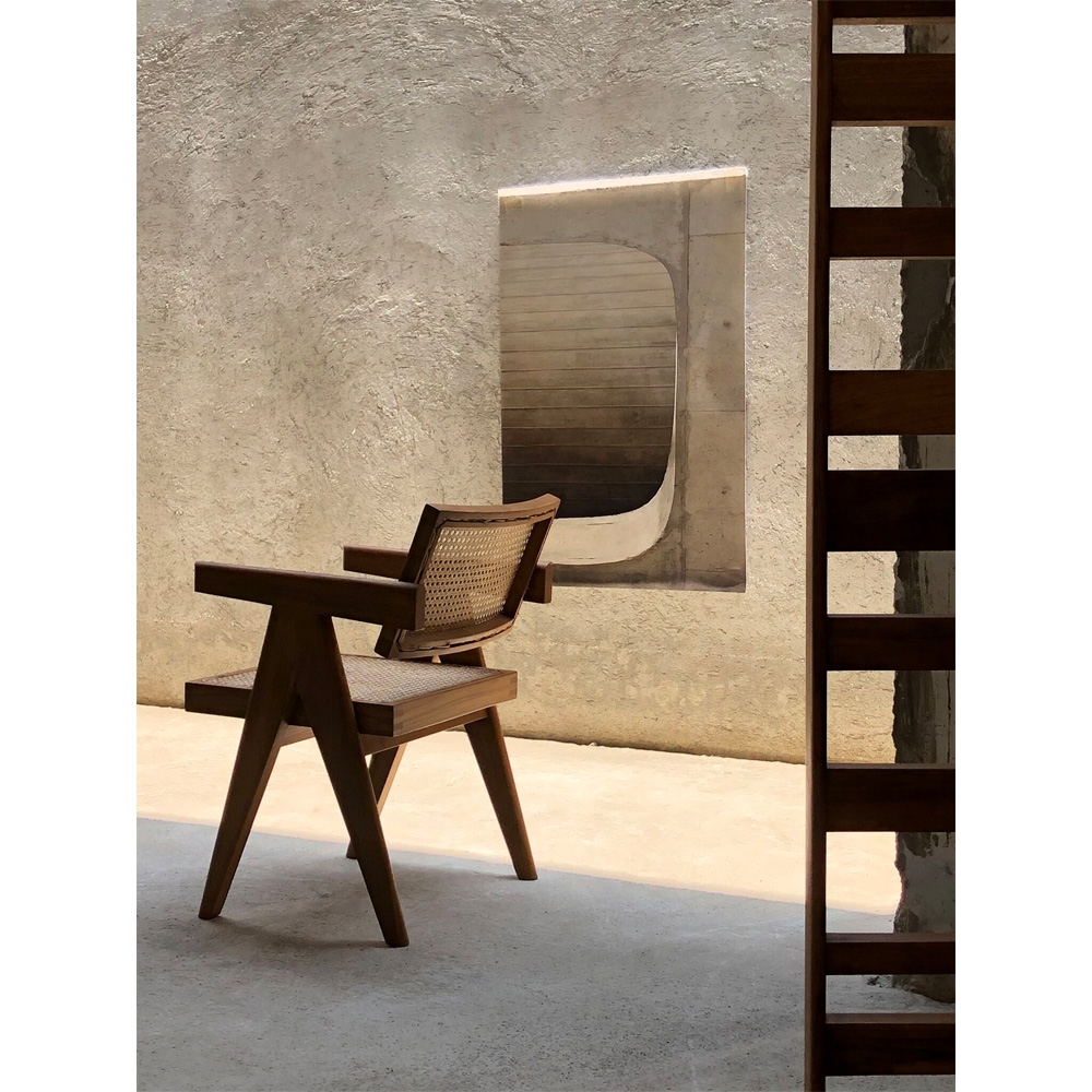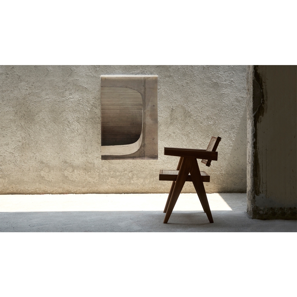 V leg 椅的重新生產版本,最初是為昌迪加爾的各種行政大樓設計的,椅子是完全手工製作的,椅子卡榫、座椅傾斜及靠背彎曲的角度,扶手和椅腳長度的邊緣柔和圓角等微小細節在重新製作的版本中皆給予了應有的重視,更為細緻。保留原件的質樸元素,除了柚木原色外還有黑色版本可以選擇。