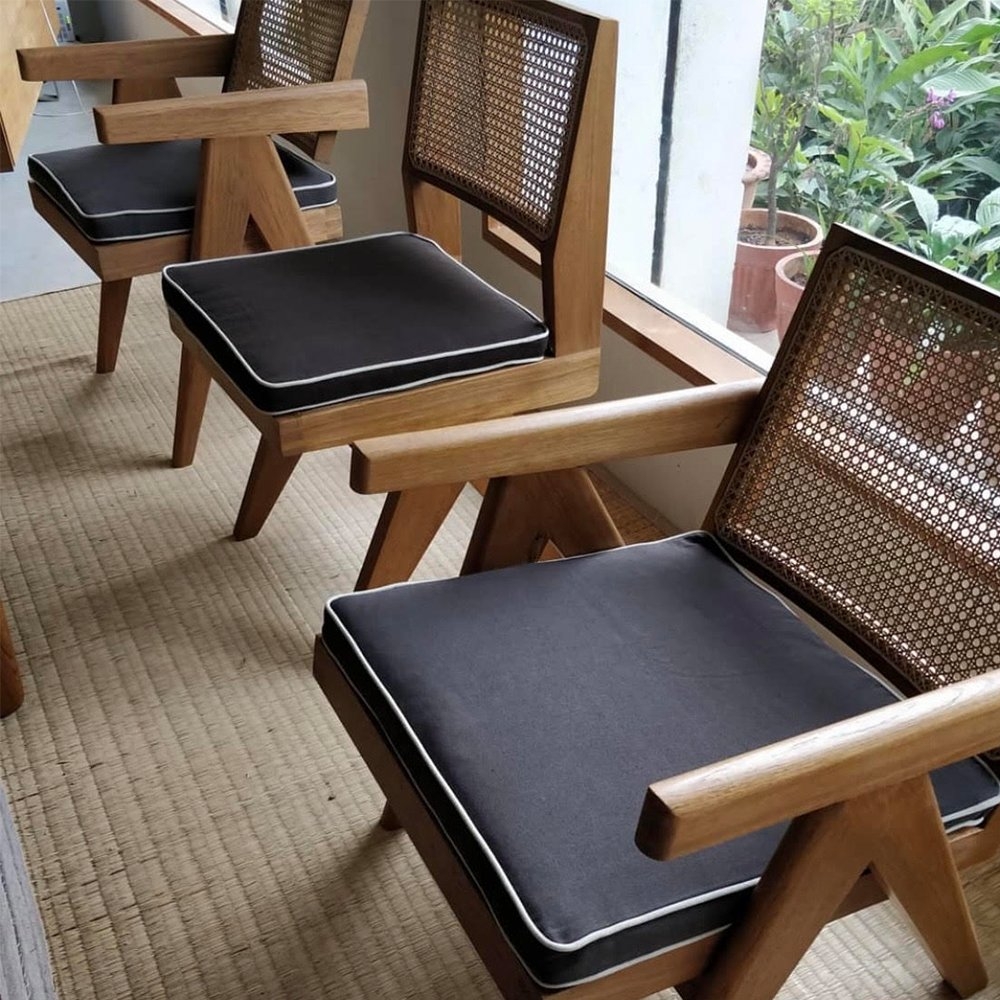 Jeanneret對於傢俱設計的特點在於他對於傢俱材質的敏感度,他利用一些基本的幾何形狀作為木質椅的設計,藉此讓產品散發出溫暖且自然感覺。Jeanneret在家具方面最出色的作品是在昌迪加爾完成的,這些都是他最近才贏得的名聲。 由柚木製成,設計從低矮的躺椅和扶手椅,藤椅到桌子和桌子,大部分都使用了Jeanneret的標誌幾何形。