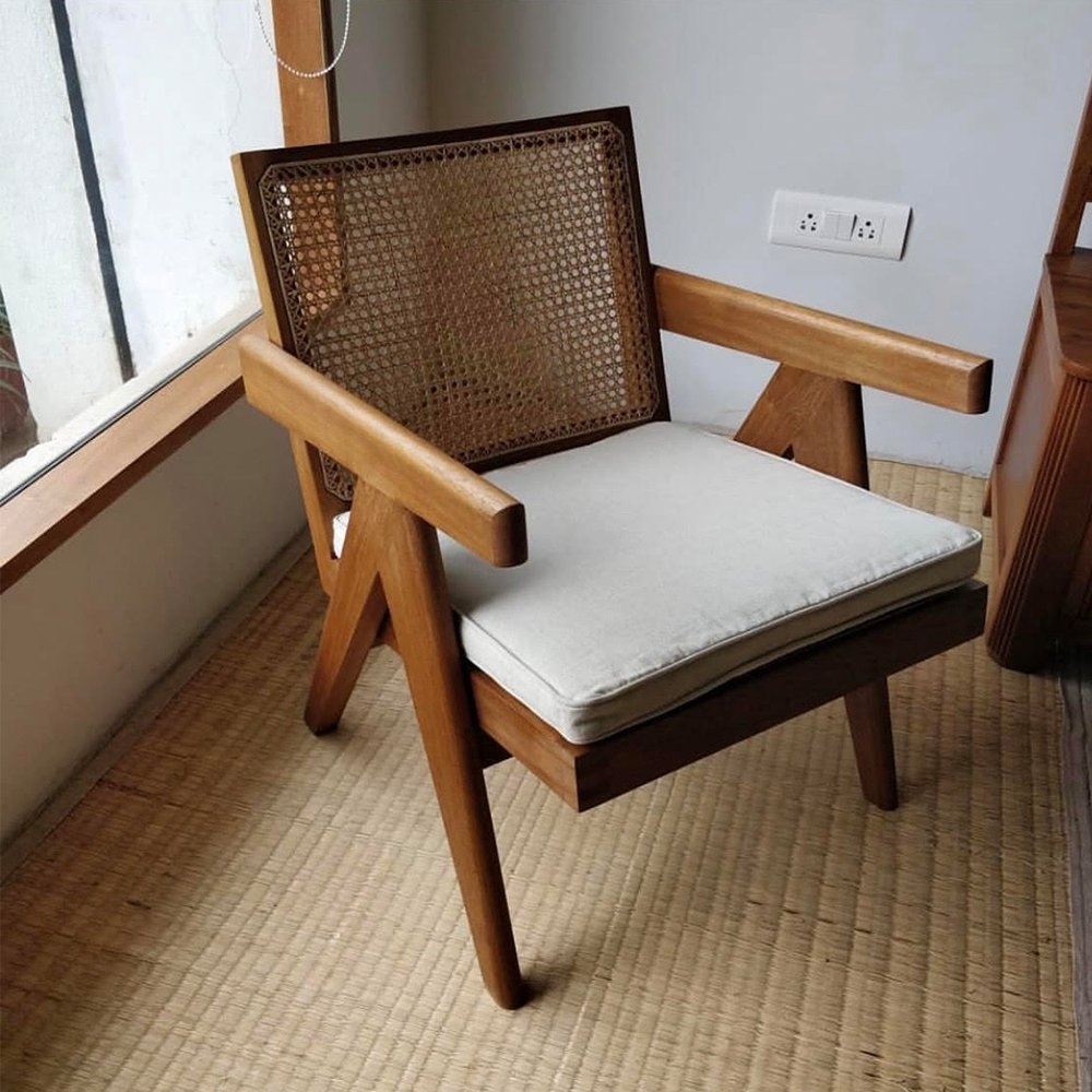 Jeanneret對於傢俱設計的特點在於他對於傢俱材質的敏感度,他利用一些基本的幾何形狀作為木質椅的設計,藉此讓產品散發出溫暖且自然感覺。Jeanneret在家具方面最出色的作品是在昌迪加爾完成的,這些都是他最近才贏得的名聲。 由柚木製成,設計從低矮的躺椅和扶手椅,藤椅到桌子和桌子,大部分都使用了Jeanneret的標誌幾何形。
