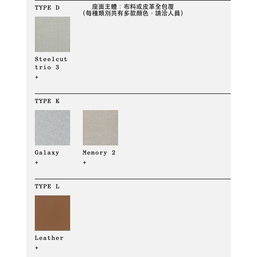 有多種布料、皮革及顏色可供選擇,請參考材質表