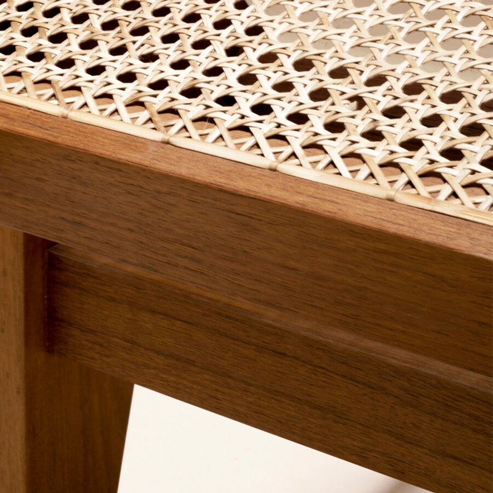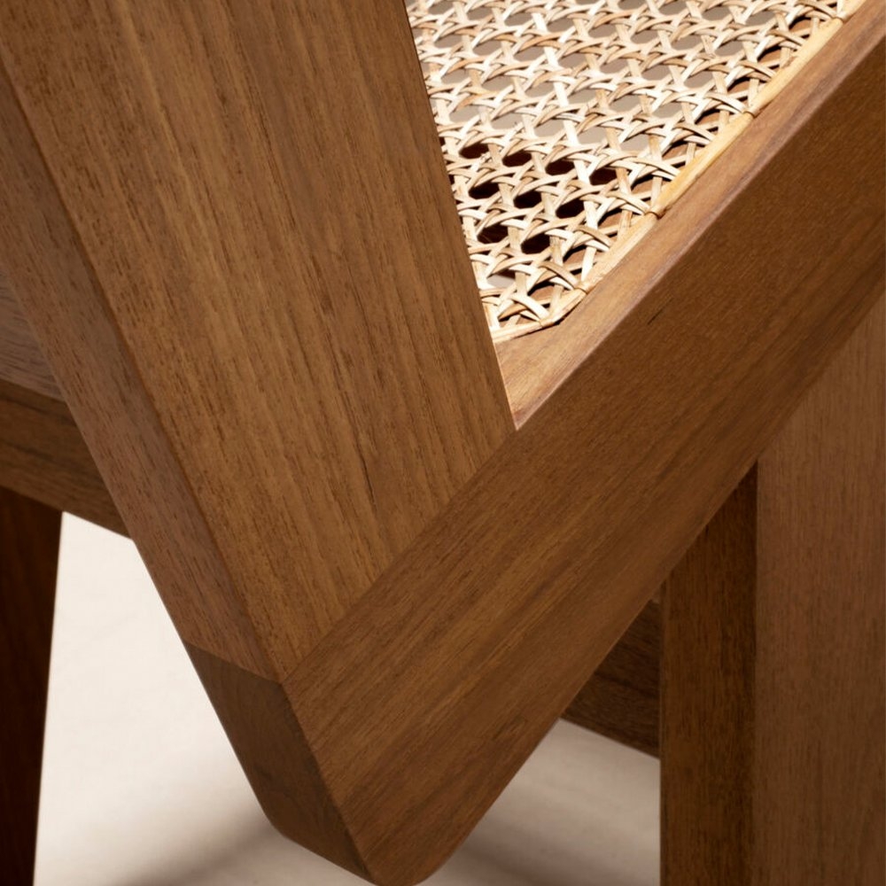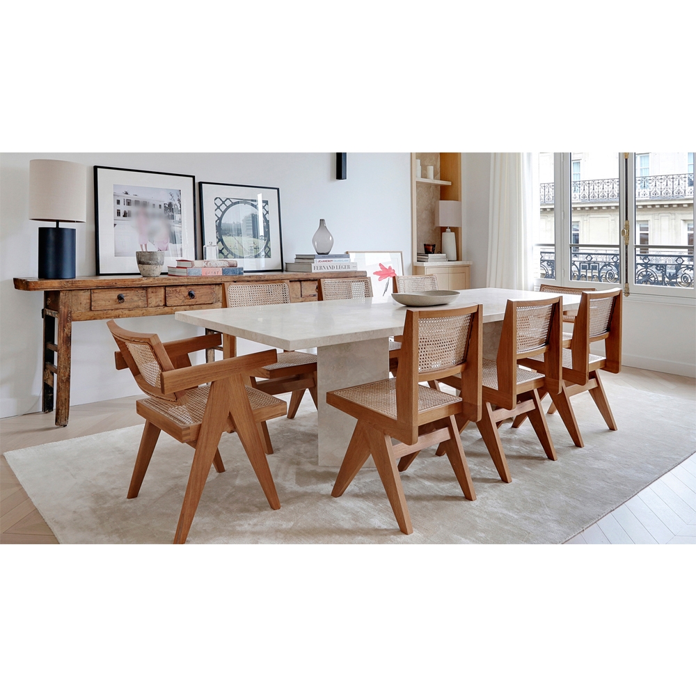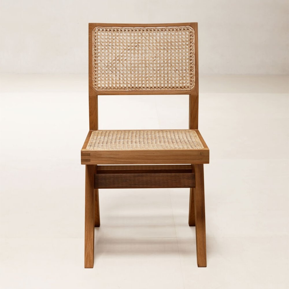 無扶手餐椅的當代重新生產版,最初是為昌迪加爾的旁遮普大學設計的。 椅子有經典'V'型喇叭三角形腿,兩個扁平橫桿支撐腿部。椅子是完全手工製作的,椅子卡榫、座椅傾斜及靠背彎曲的角度,扶手和椅腳長度的邊緣柔和圓角等微小細節在重新製作的版本中皆給予了應有的重視,更為細緻。保留原件的質樸元素,除了柚木原色外還有黑色版本可以選擇。