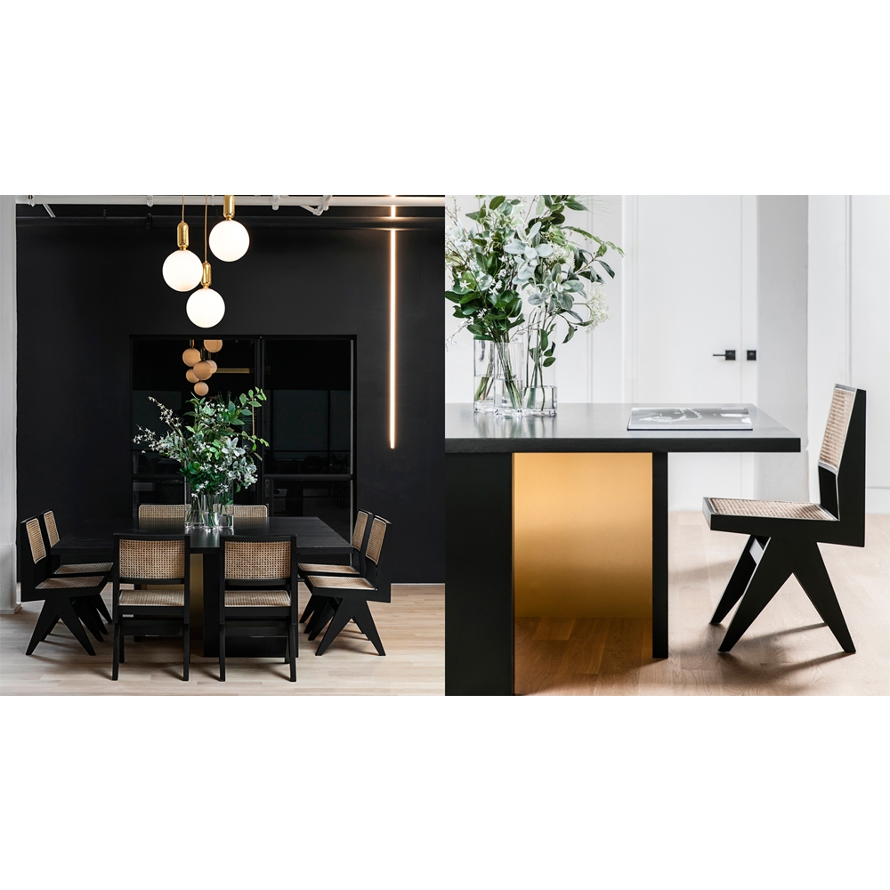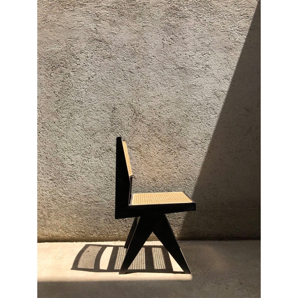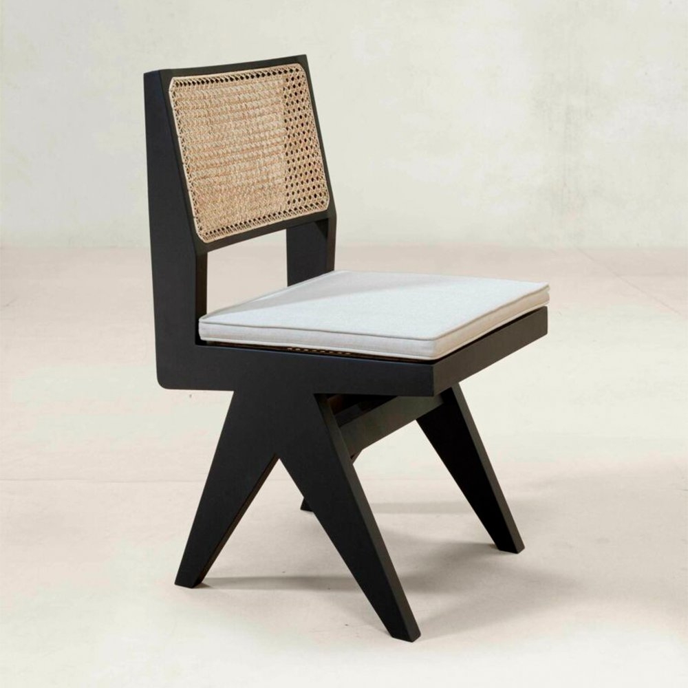 無扶手餐椅的當代重新生產版,最初是為昌迪加爾的旁遮普大學設計的。 椅子有經典'V'型喇叭三角形腿,兩個扁平橫桿支撐腿部。椅子是完全手工製作的,椅子卡榫、座椅傾斜及靠背彎曲的角度,扶手和椅腳長度的邊緣柔和圓角等微小細節在重新製作的版本中皆給予了應有的重視,更為細緻。保留原件的質樸元素,除了黑色版本外還有柚木原色版本可以選擇。
