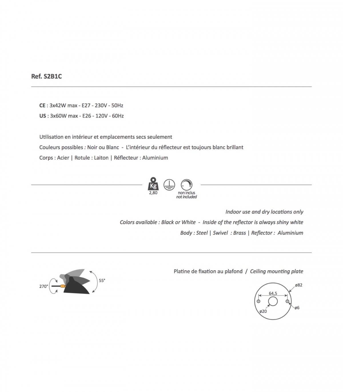MC-02-B 三臂吊燈 (兩臂固定,一臂彎曲可選轉)