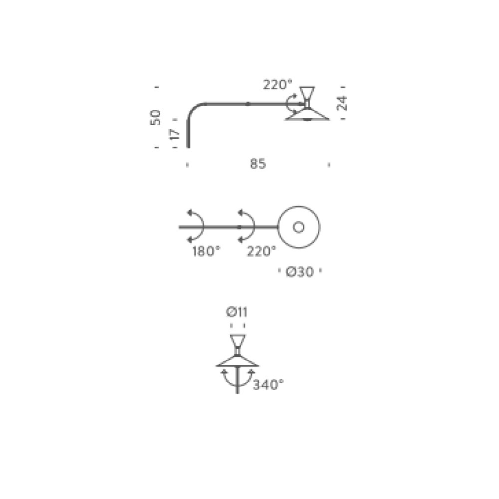 Nemo Lighting 的 Lampe de Marseille Mini是世界著名建築師Le Corbusier在1950年代為馬賽的住區設計的壁燈的較小版本。 由於支臂具有兩個可調關節,因此燈的位置易於調節,相當實用。 引人注目的燈罩由兩個鋁錐構成,可提供直接和間接的光源。 Lampe de Marseille是一個具代表性的作品,經得起時間的考驗。