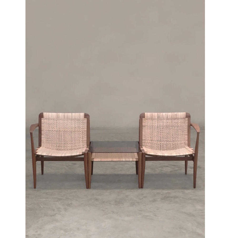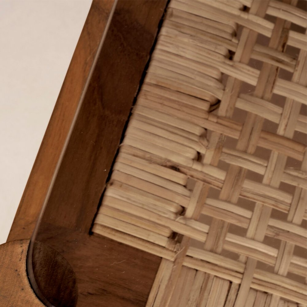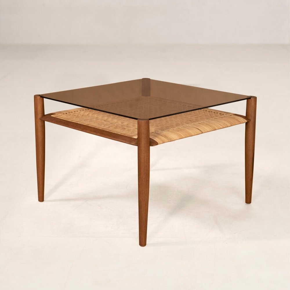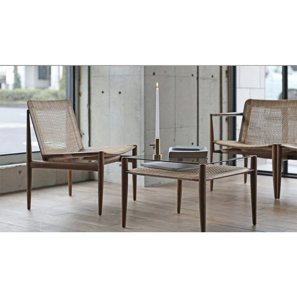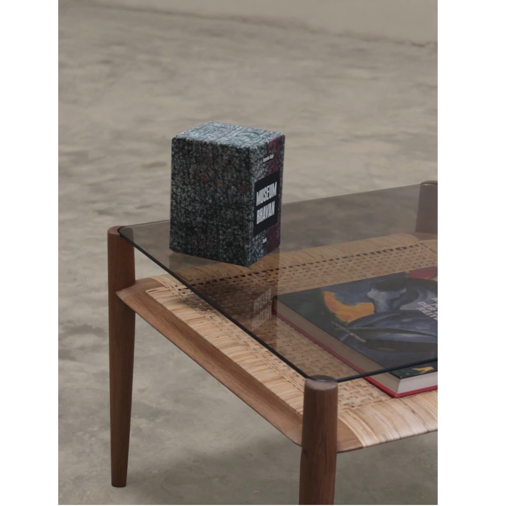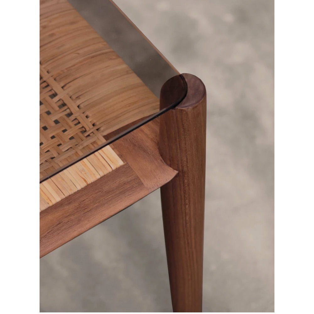 Tangāli 邊桌可以用作獨立的邊桌,玻璃桌面帶有淡淡的褐色,在玻璃下方是手工編織的藤架,可用於放置書籍和雜誌。