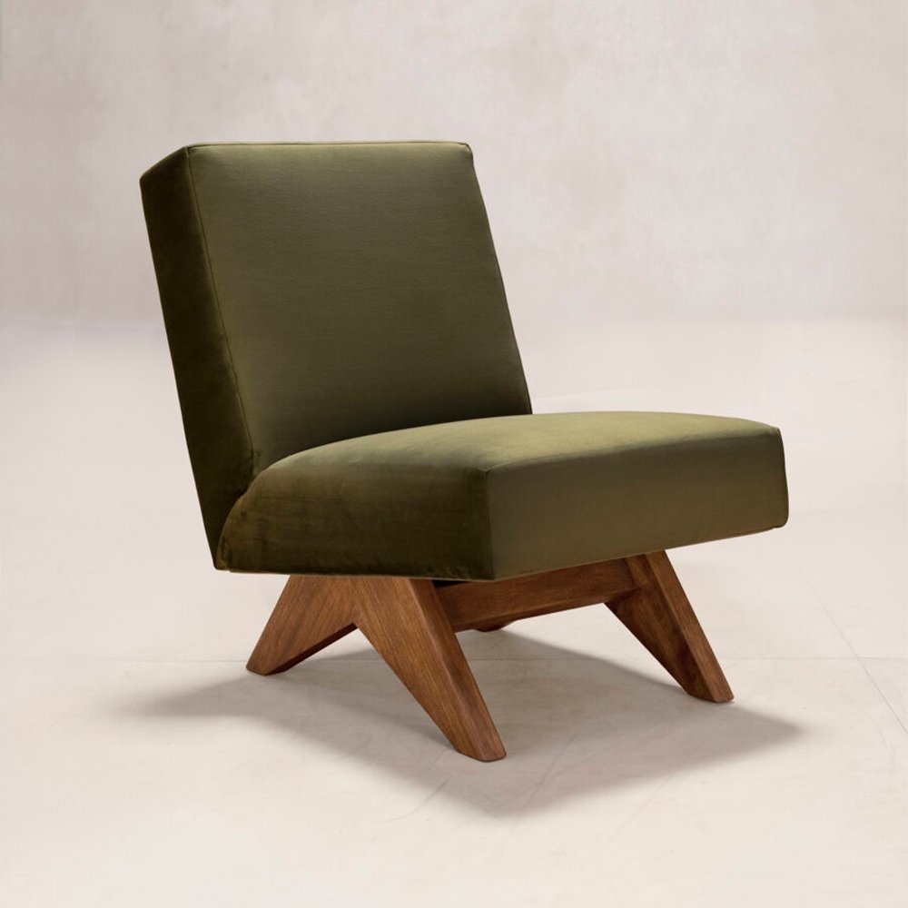 Upholstered Armless Chair 無扶手休閒椅是在1950年代時,為了昌迪加爾的案子時所設計的高等法院和議會椅。重新生產的版本選用高品質的布料,並且有多種布料款式和顏色可供選擇,如果想要更多布料選擇的資訊,請來電或來信洽詢。