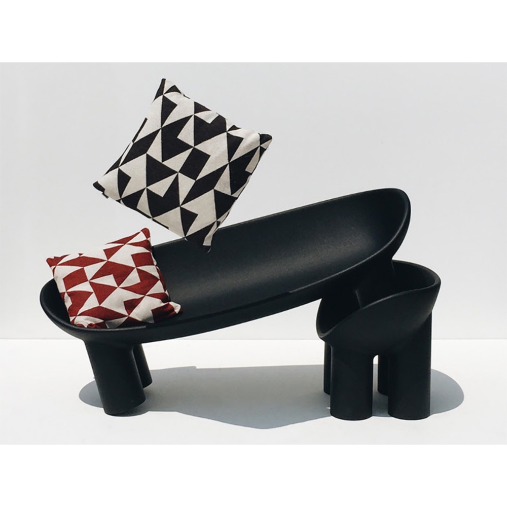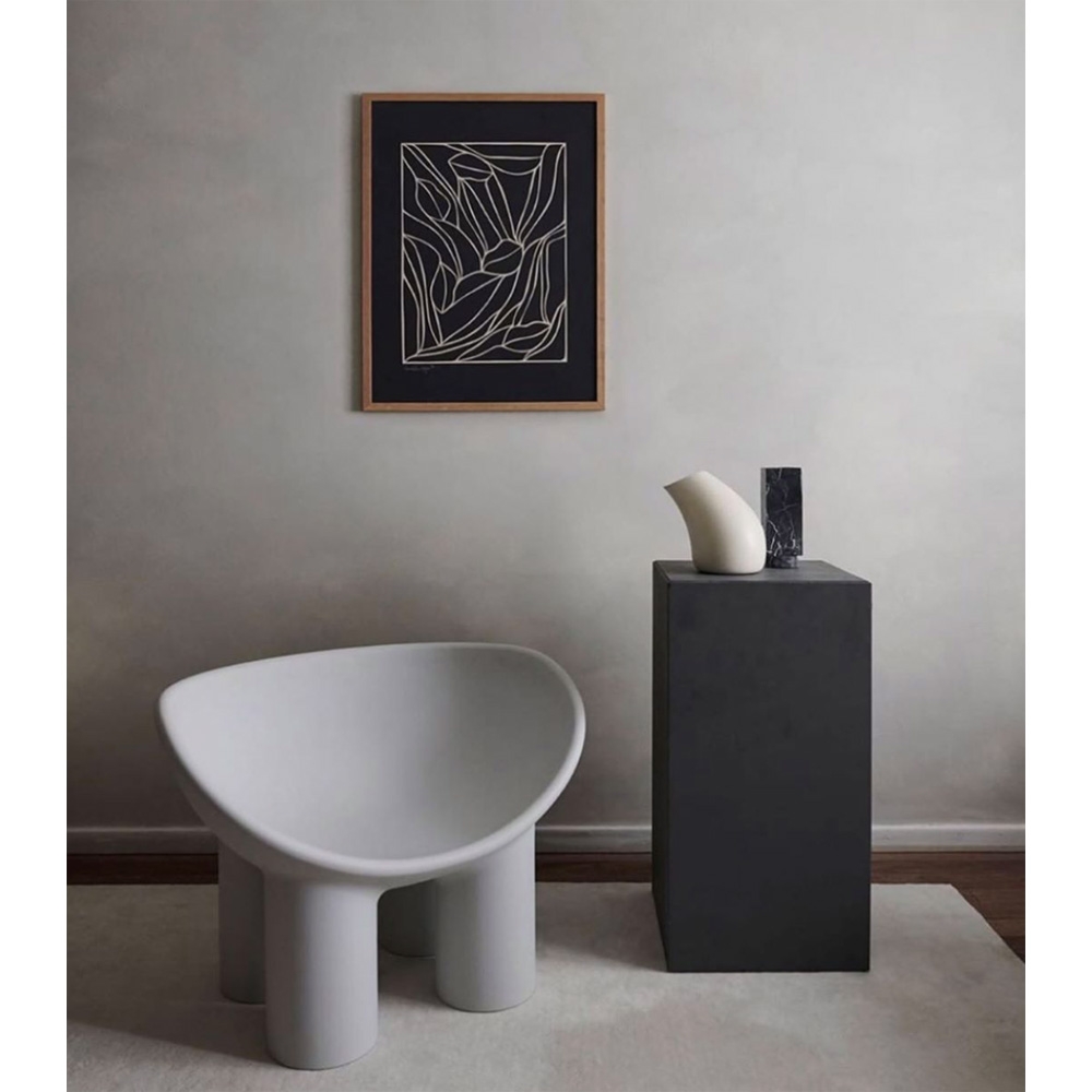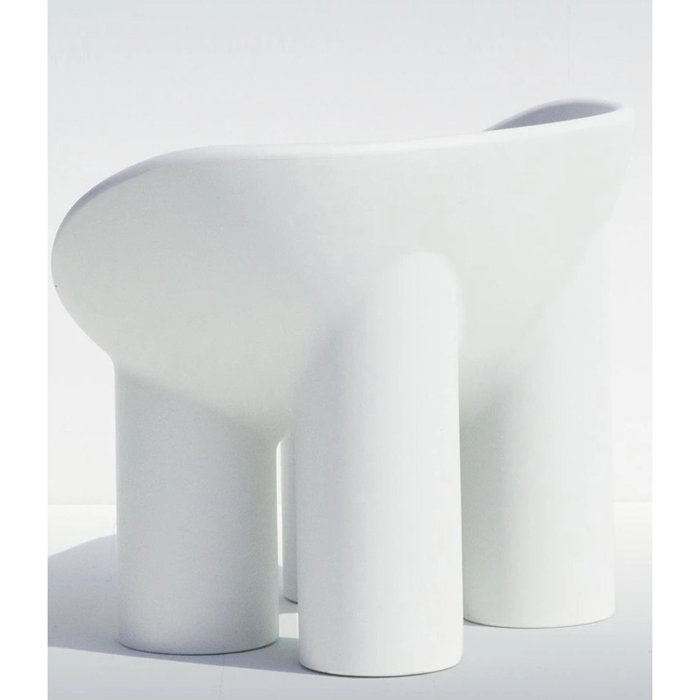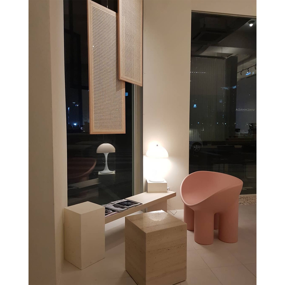 Faye Toogood 與義大利品牌 Driade 合作,將 Roly Poly 的美學,以塑料材質演繹,維持勺狀座面優美的拱形、以及四隻堅實壯碩的椅腿,不同之處在於塑料易於清理且耐用,放置室內和室外皆合適,價格相較於玻璃纖維版本,也更加平易近人。此外,塑料版擁有六款配色,可隨空間轉換自由選配色系。塑料版可另行加購軟墊,靠墊呈弧形碗狀,完美貼合椅面。