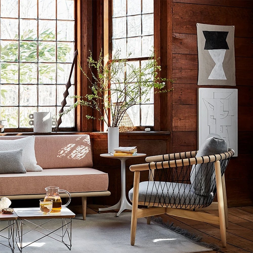 由 George Nelson 於1950年設計,它為當時的室內設計帶來樸質的審美角度。 如今,其纖細的斜邊木框架依舊百搭於現代家庭和辦公室之中。