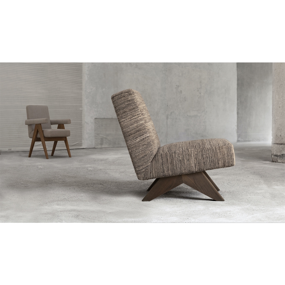 Upholstered Armless Chair 無扶手休閒椅是在1950年代時,為了昌迪加爾的案子時所設計的高等法院和議會椅。重新生產的版本選用高品質的布料,並且有多種布料款式和顏色可供選擇,如果想要更多布料選擇的資訊,請來電或來信洽詢。