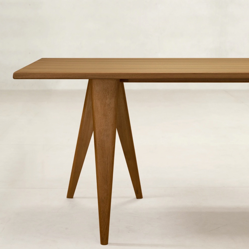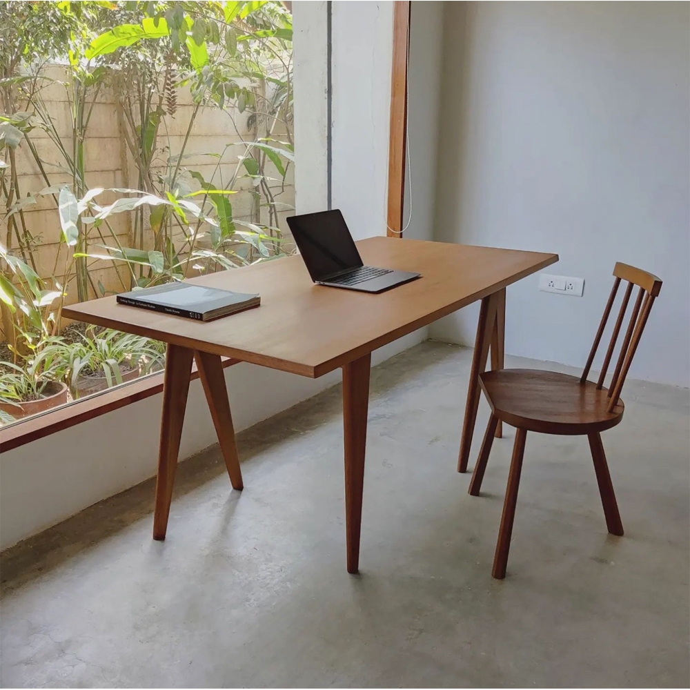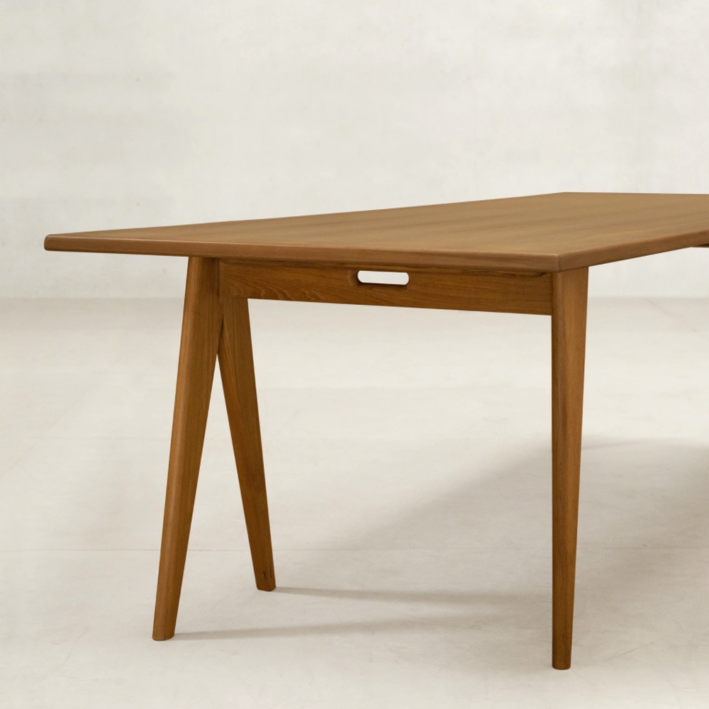 X+L 向法國現代主義設計的標誌性風格的指針腿致敬。 X+L 工作桌的支腿和橫桿由實心柚木製成,而桌面則由膠合板上的柚木貼面製成。桌面設計為扁平包裝,易於組裝,無需任何螺釘或螺栓。 工作桌分別有兩種尺寸-較小的辦公桌尺寸和較大的尺寸,可用作餐桌、工作台或會議桌。