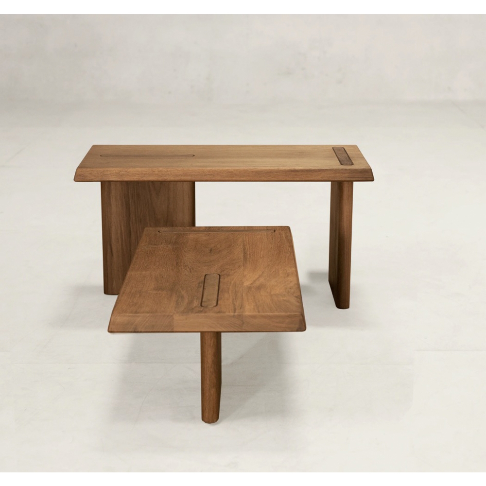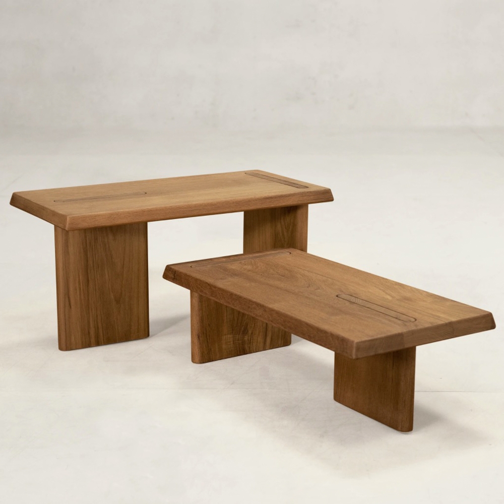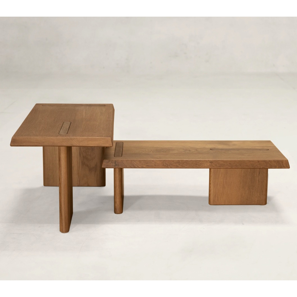 X+L 邊桌完全由實心柚木製成,旨在配合 X+L 的另一款組合式沙發。不過,它們也可以單獨用作邊桌或小型咖啡桌。 邊桌成對出現-較高的邊桌與模組化沙發座墊的高度對齊,而較矮的邊桌與沙發座架的底部對齊。桌面邊緣與沙發扶手具有相同的角度,邊桌腳與沙發腿具有相同的半徑和厚度。整體看來十分融洽。