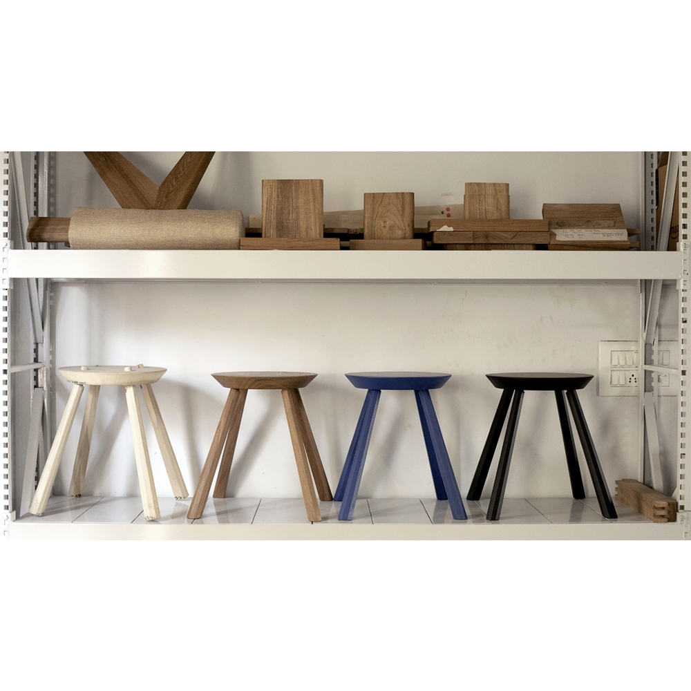 多功能凳子非常適合坐在桌子或邊桌上。它堅固,緊湊,特別適合於小空間和城市公寓。目前可提供天然柚木、黑色和藍色材質的凳子。