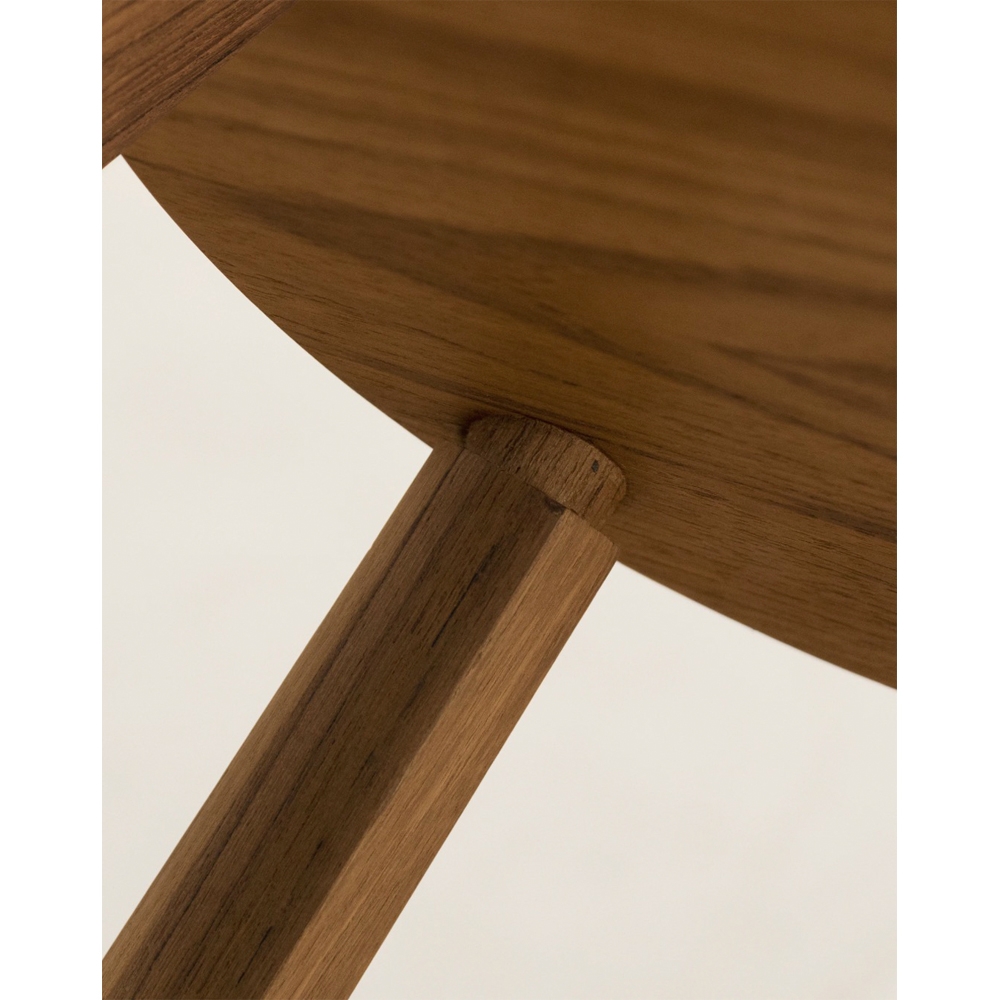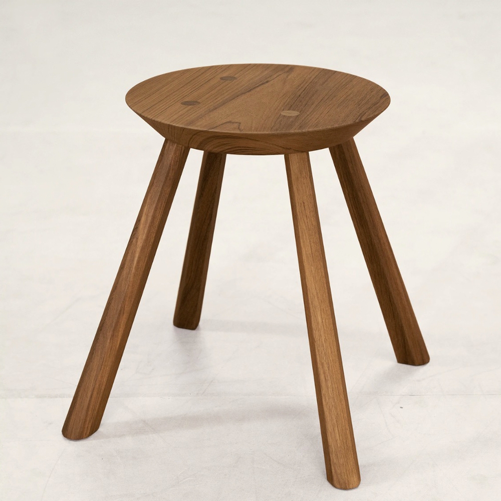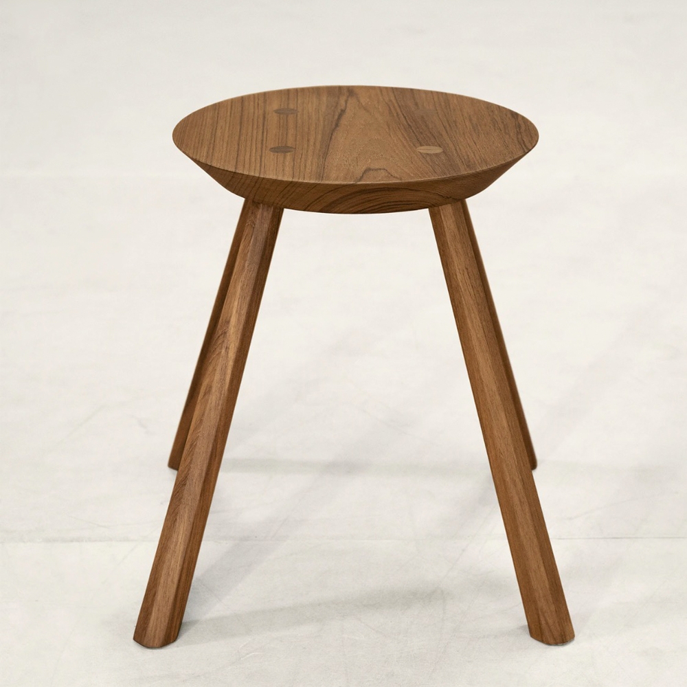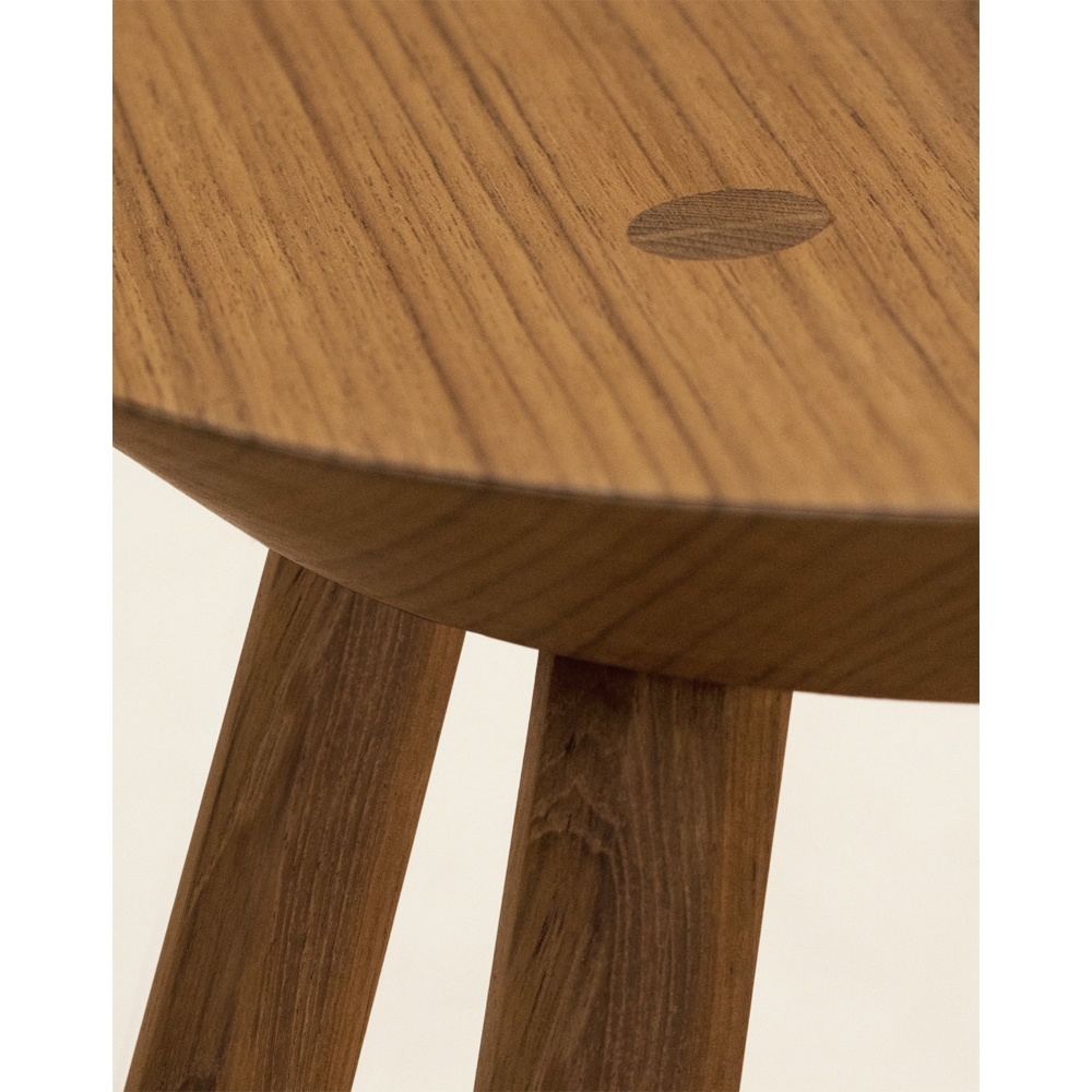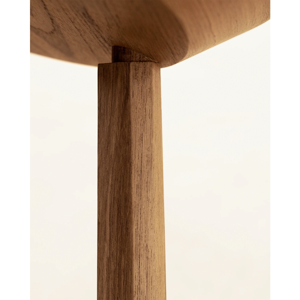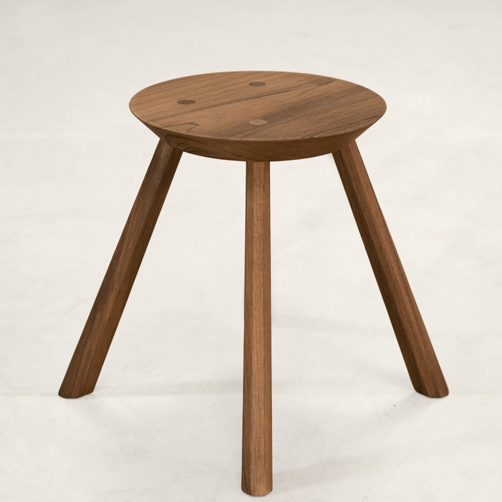 經典木工技術的另一個細節是楔子,該楔子插入到座椅頂部的圓柱榫中,使裝配更加緊密。這在凳子中央上的四個圓形圖案的清晰可見,特別是在天然柚木飾面的版本中。
