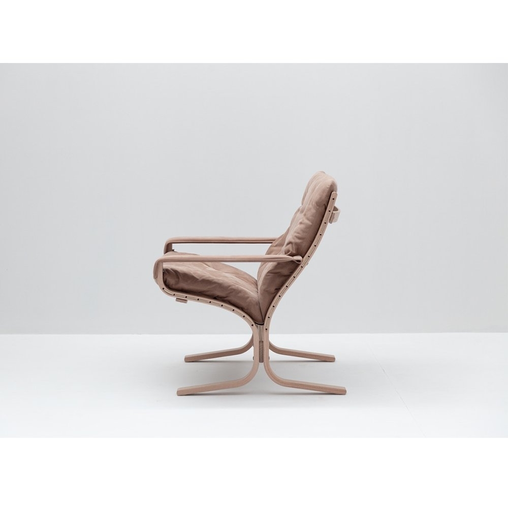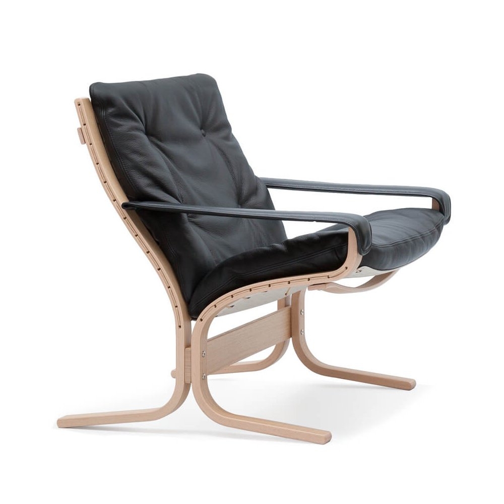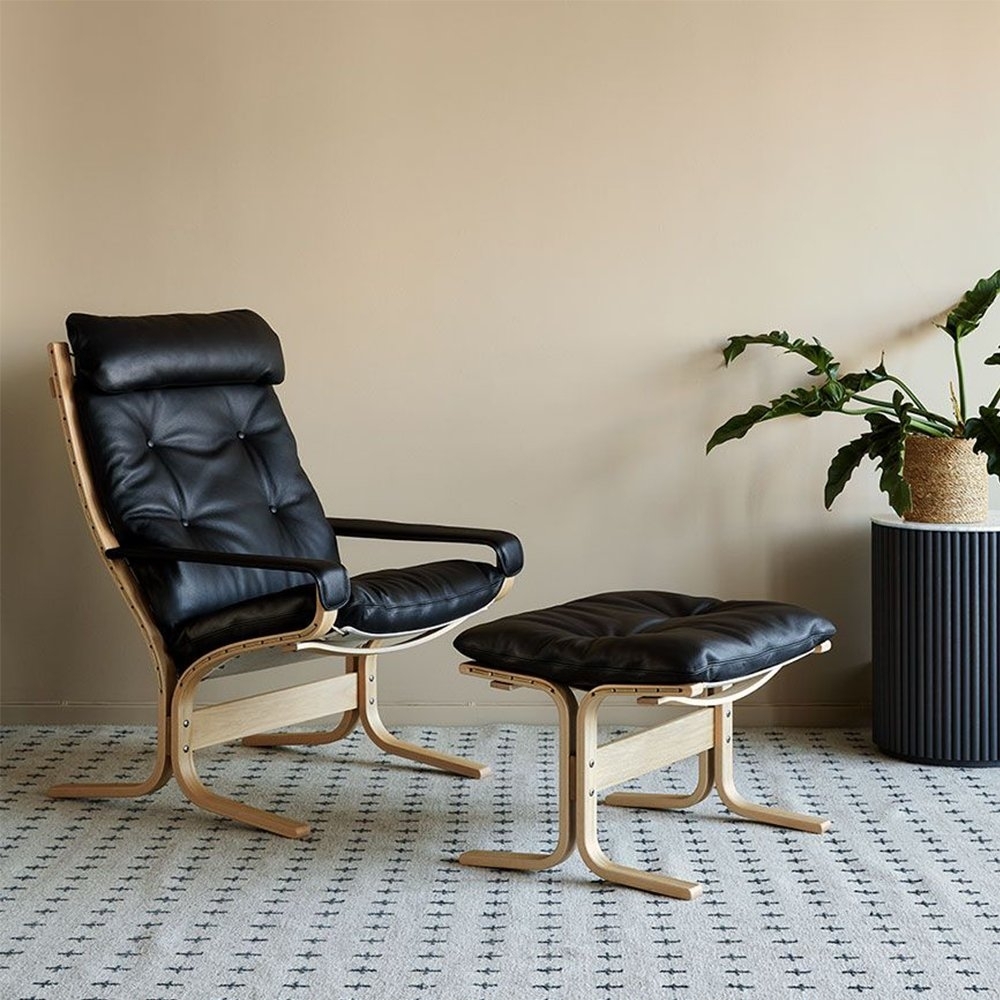 Siesta 意指「午睡」,這把椅子使人眼神一接觸便萌生發懶念頭,經由多道工序才造就舒適外型,有著挪威家具一貫厚重穩固的形象。橡木、山毛櫸及樺木疊合彎曲成椅架,反覆調校木材寬度、厚度和角度以求最佳體感,椅墊與椅背利用帆布張力支撐,穿繩繩索巧妙的隱藏在木板兩側凹槽裡,最後搭配鬆軟皮革座墊,成為了北歐家具界廣為人知的代表,也是國際公認經典的挪威標誌性設計。