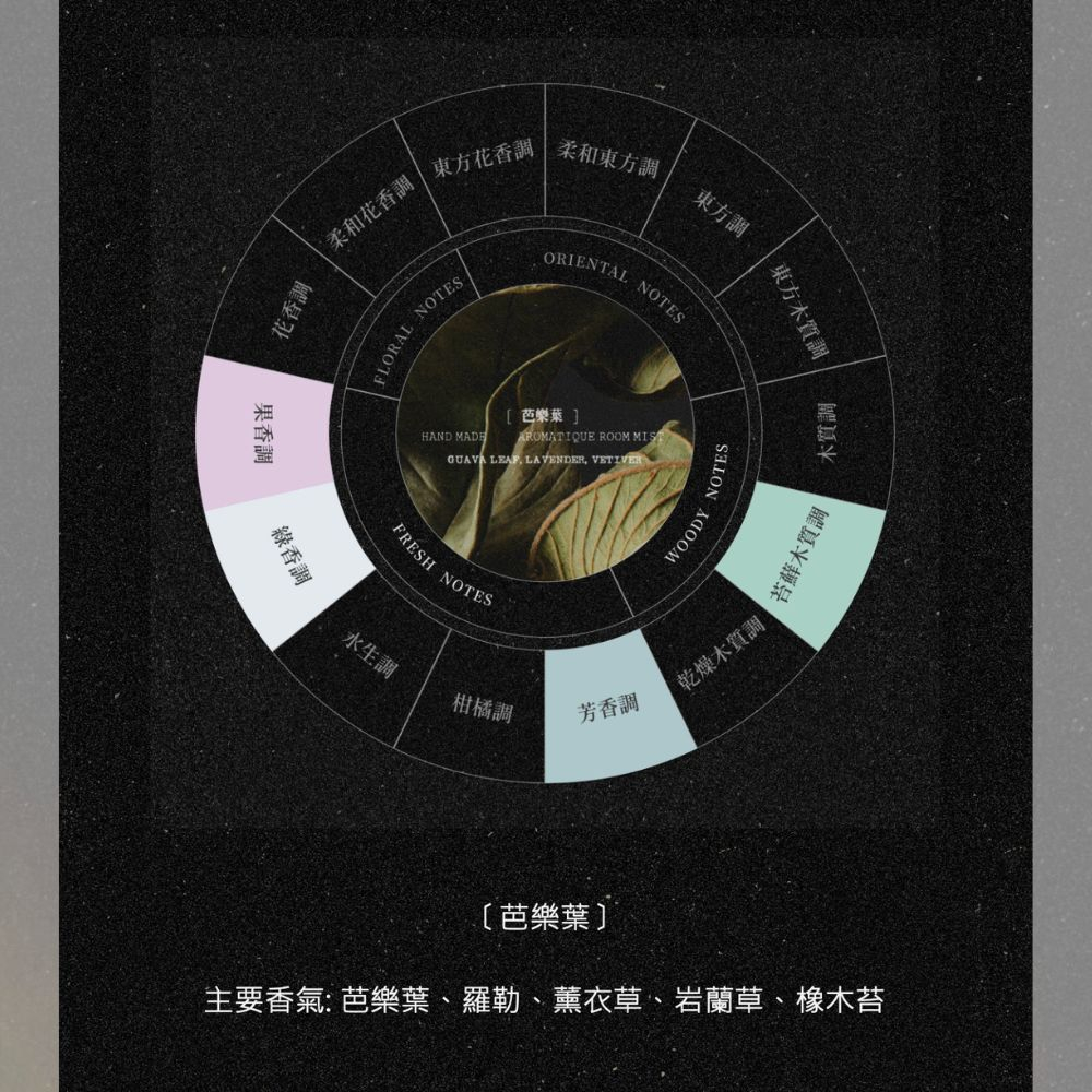 [芭樂葉] 主香氣:芭樂葉、羅勒、薰衣草、岩蘭草、橡木苔