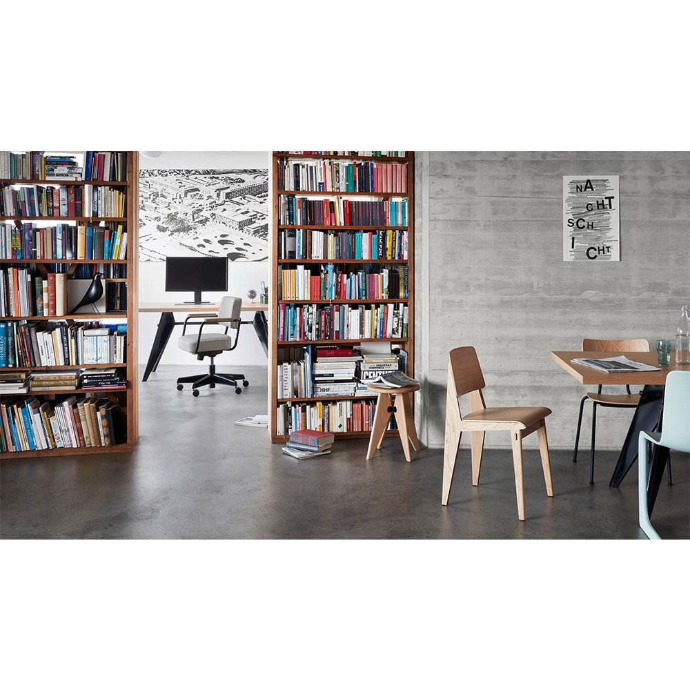 知名作品如 Standard chair、Antony chair,Jean Prouvé 用片狀的金屬加工方式,直接彎曲、壓鑄的加工法來創造結構性更強,且兼具美感的產品,讓陽剛金屬所產生的結構設計穩定感直接呈現。