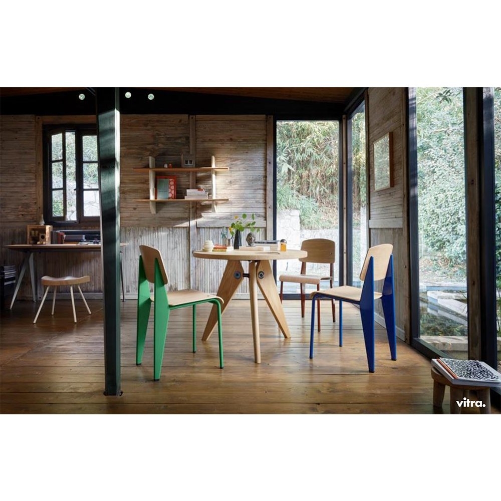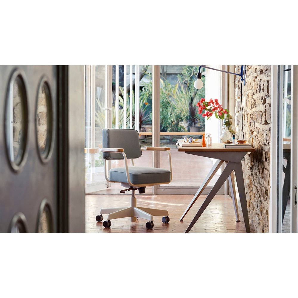 擅長以質樸、不加以修飾的金屬零件與木材成為家具主體結構的法國設計師 Jean Prouvé,在 50 年代創作出匠心獨具的 Compas Direction 工作桌,以窄版、片狀式金屬結構化桌腳設計,巧妙地向航海世代偉大領航者的「羅盤」致敬。Jean Prouvé 自小受到身為教育家的父親影響,進行創作時總是和人道關懷及社會意識有所連結,在他的作品中可以發現「簡易」與「實用性」的特點被一再強調,似乎也順理成章!