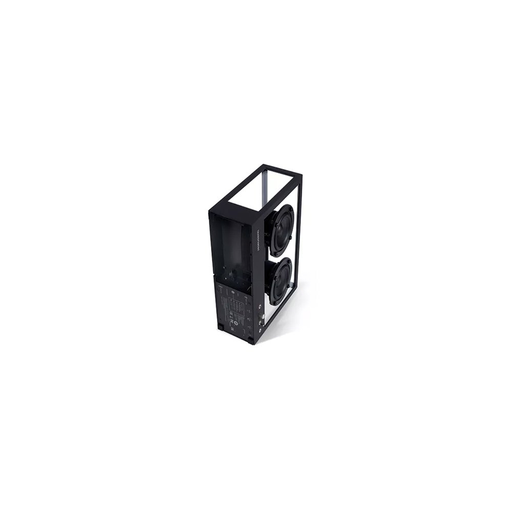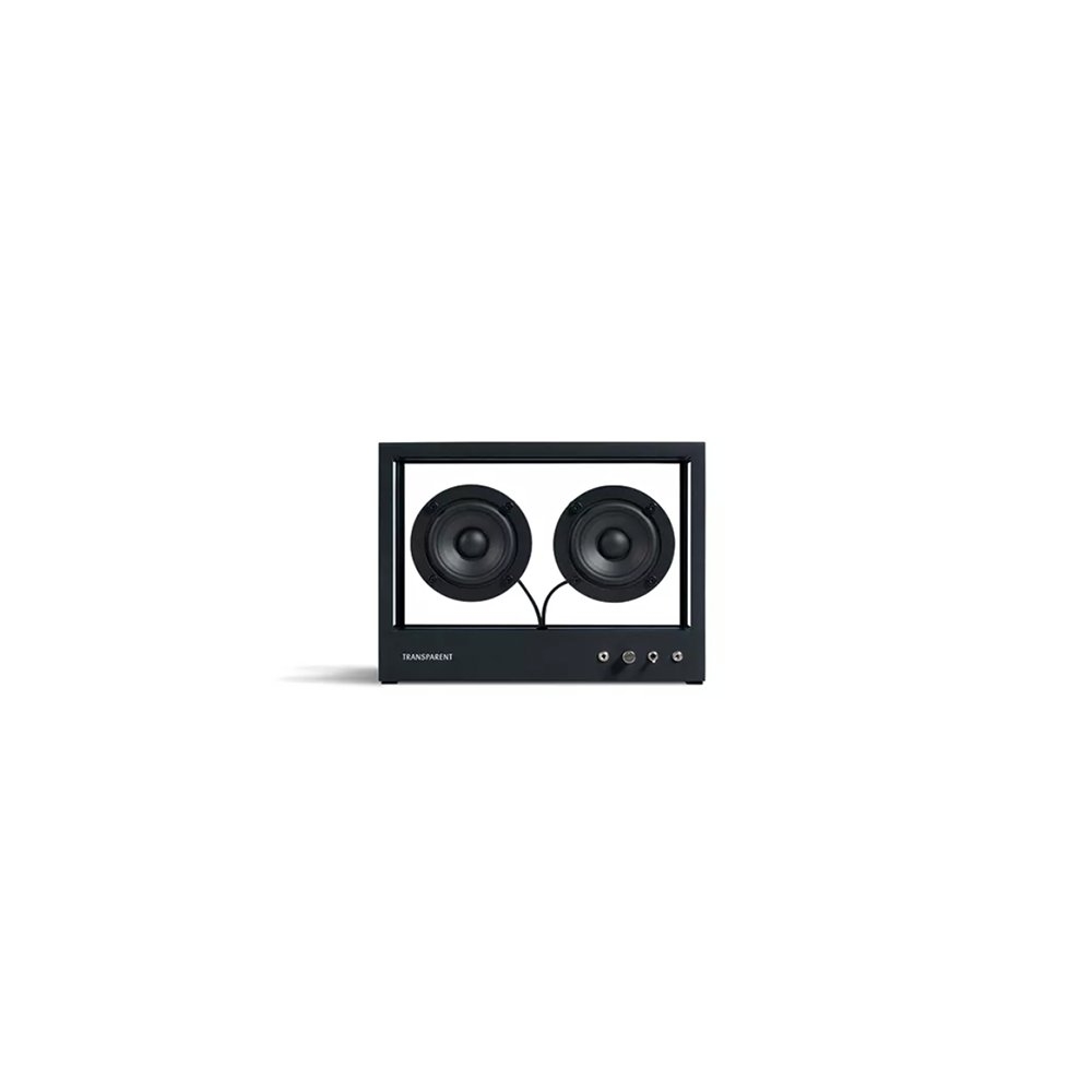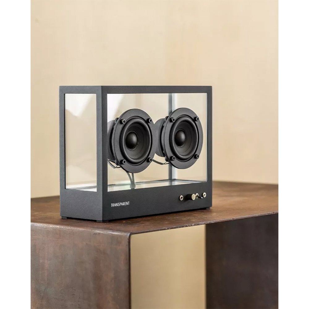 Transparent 小透明音響黑色以獨特的鋼化玻璃和鋁製單框結構呈現出透明一目瞭然的內部細節,展示一種源於對斯堪地那維亞簡約和功能主義熱愛的設計方法。