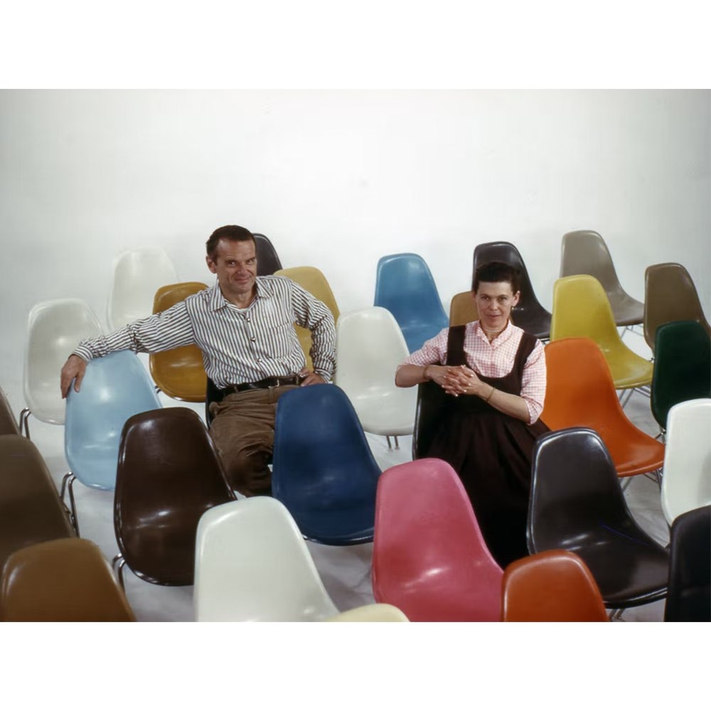 Charles和Ray Eames是20世紀最重要的設計師之一,也是一對夫妻檔設計師。他們主要活躍於美國,以家具設計、建築和影像設計而聞名。 Charles Eames出生於1907年,是一名建築師,曾在康奈爾大學學習建築學。Ray Eames出生於1912年,則是一名畫家和設計師。兩人於1941年相識並開始合作。在他們的職業生涯中,他們的合作夥伴關係變得越來越密切,並在1950年代的許多項目中以共同創作簽名。 Eames夫婦以對工業生產和創新的熱情而聞名。他們經常使用新材料和技術,例如合成材料和塑料,並以獨特的方式將它們整合到設計中。他們的產品具有美學上的簡潔和功能性,並且具有現代主義風格。 Eames夫婦最著名的產品之一是他們的椅子設計,包括DCM(餐椅金屬),LCM(餐椅木質)等等。他們也是著名的建築師,設計了許多房屋和商業建築,包括他們自己的住所——Eames House。Charles和Ray Eames被認為是現代設計的先驅之一,他們的設計風格和創新精神影響了許多人,尤其是當代設計師和建築師。