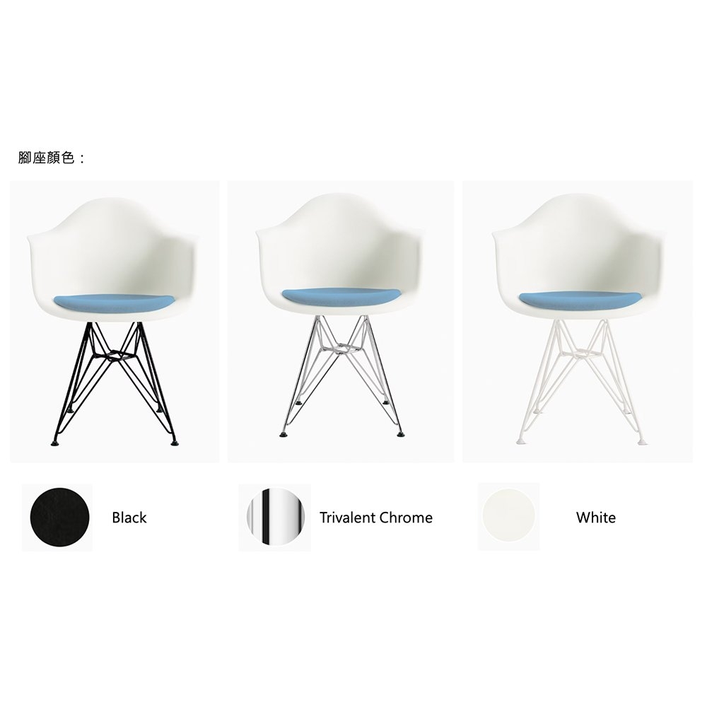 材質:可回收模壓塑料、金屬腳座、布料或皮革坐墊