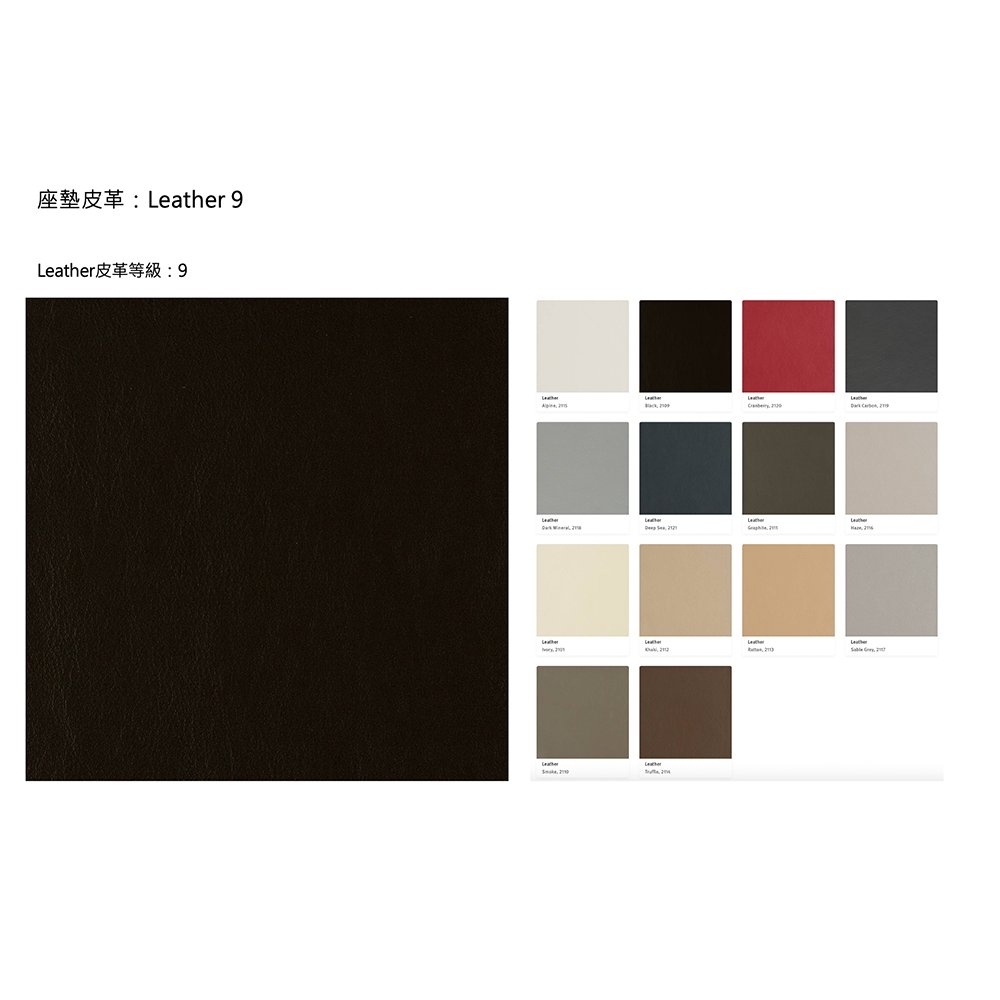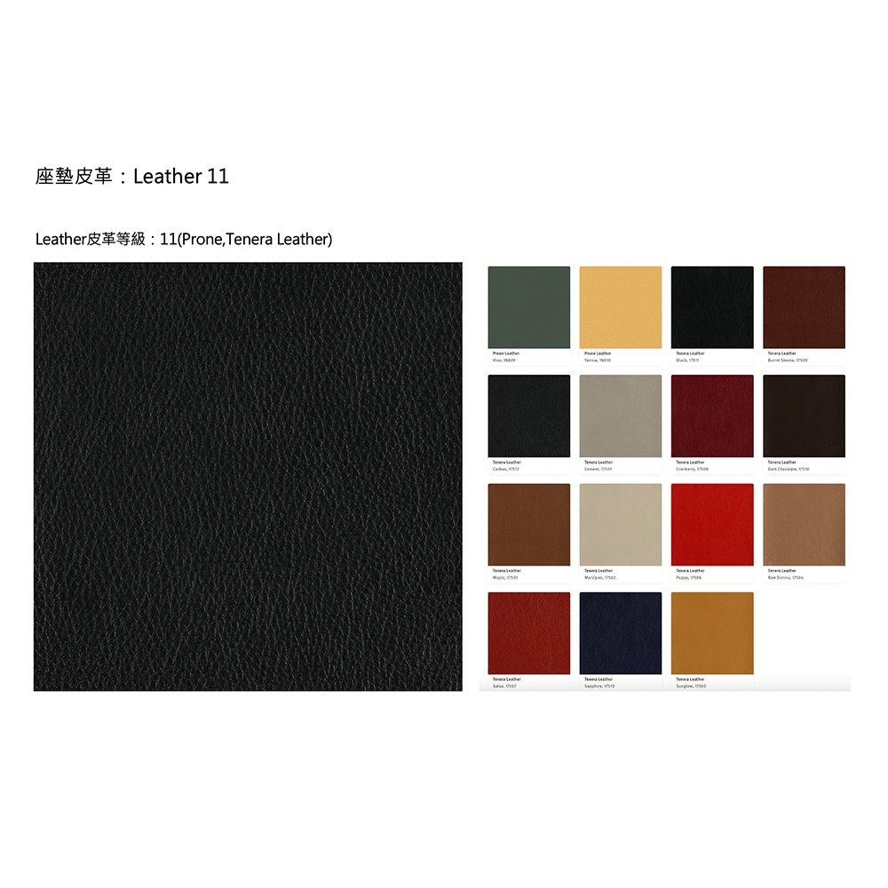坐墊布料:Fabric Cat.2、Leather Cat.9、Leather Cat.10、Leather Cat.11