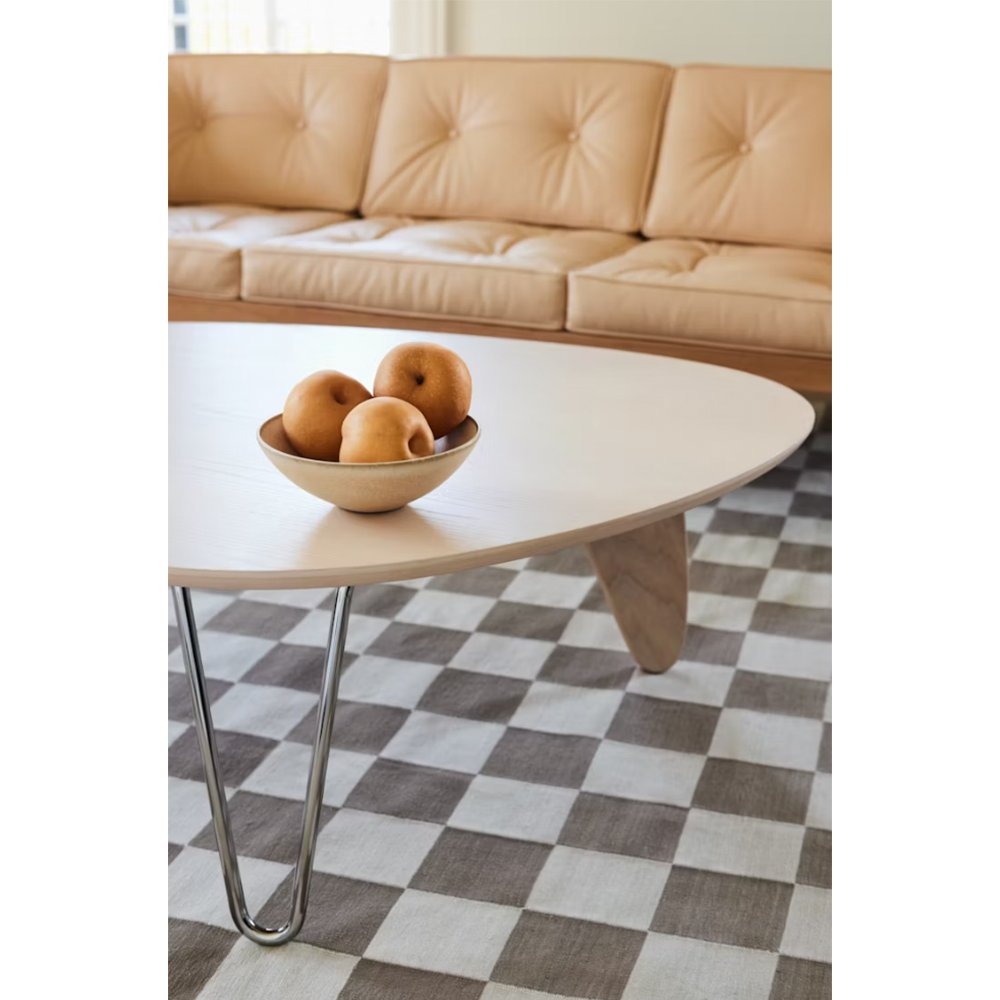 Noguchi Rudder 桌與 1947 年的玻璃 Noguchi 咖啡桌擁有幾乎相同的形狀和尺寸桌面,該咖啡桌在 1984 年重新推出後迅速成為最具標誌性的 Herman Miller 作品之一。它有胡桃木色、烏木色或白蠟木色可供選擇。