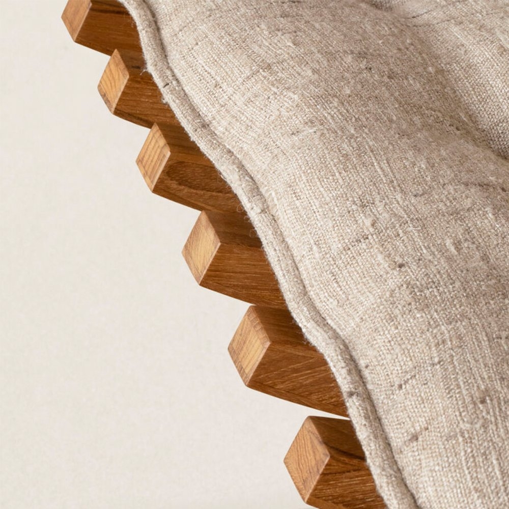 此 Bench 是一款三人座座椅,填充物採用有機棉,並堅持傳統手工簇絨及 Zanav 精選的手紡棉和絲織物進行軟墊製作。