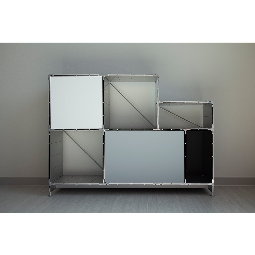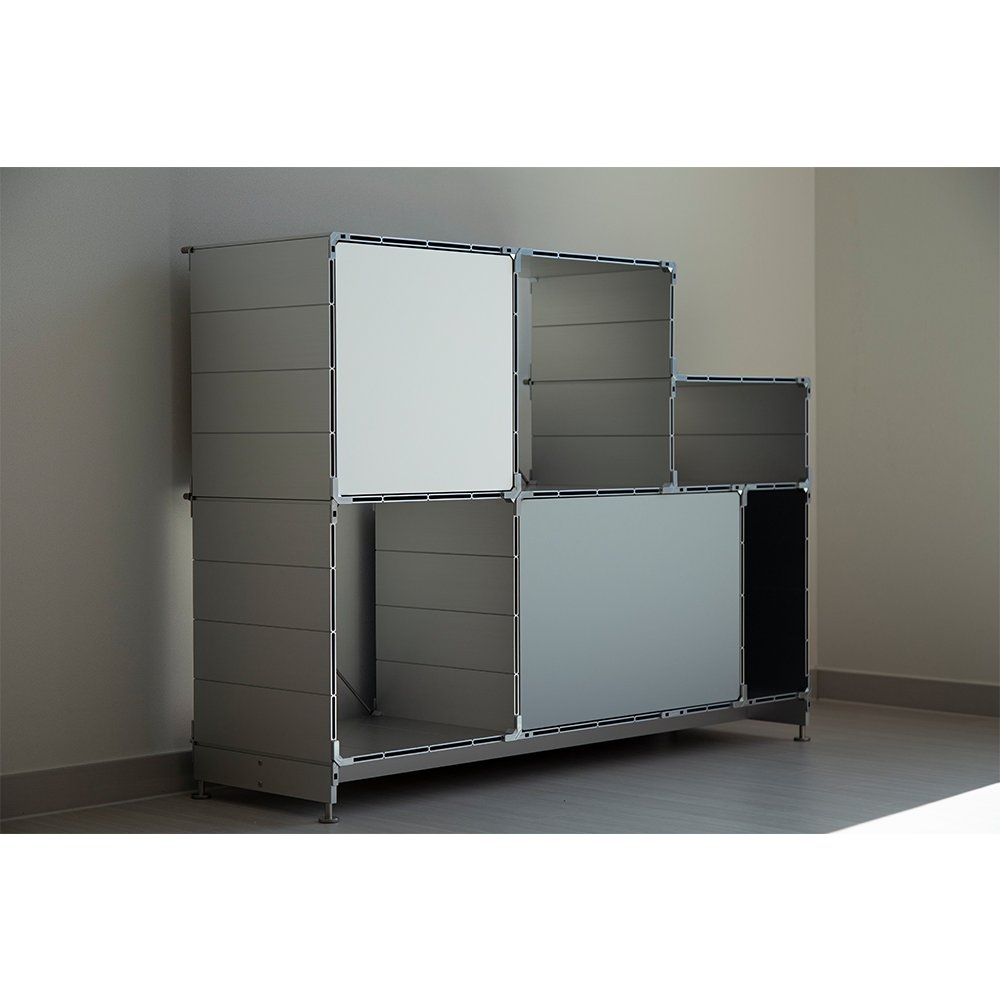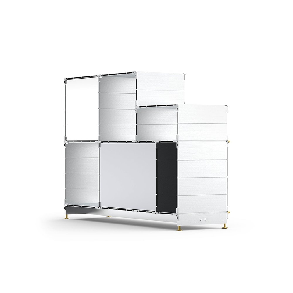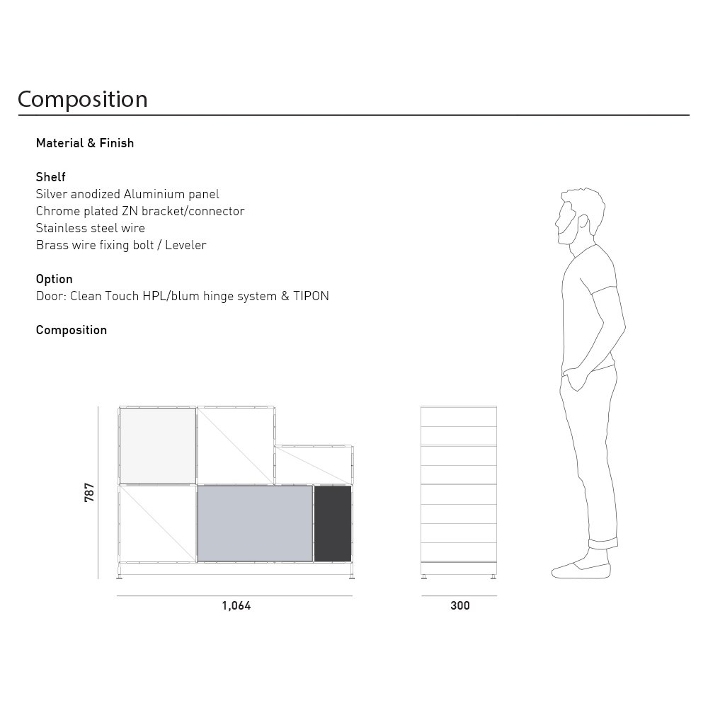 韓國新銳品牌 Monstructure 品牌創辦人 Kim Byung Ho 畢業於英國聖馬丁設計學院,爾後創辦 Monstructure 品牌,品牌以永續使用的鋁合金材質創造出不同形式的零件,使用者可依照需求及喜好自行規劃系統櫃的尺寸及功能,透過板材及卡扣零件組合,可無限的延伸。